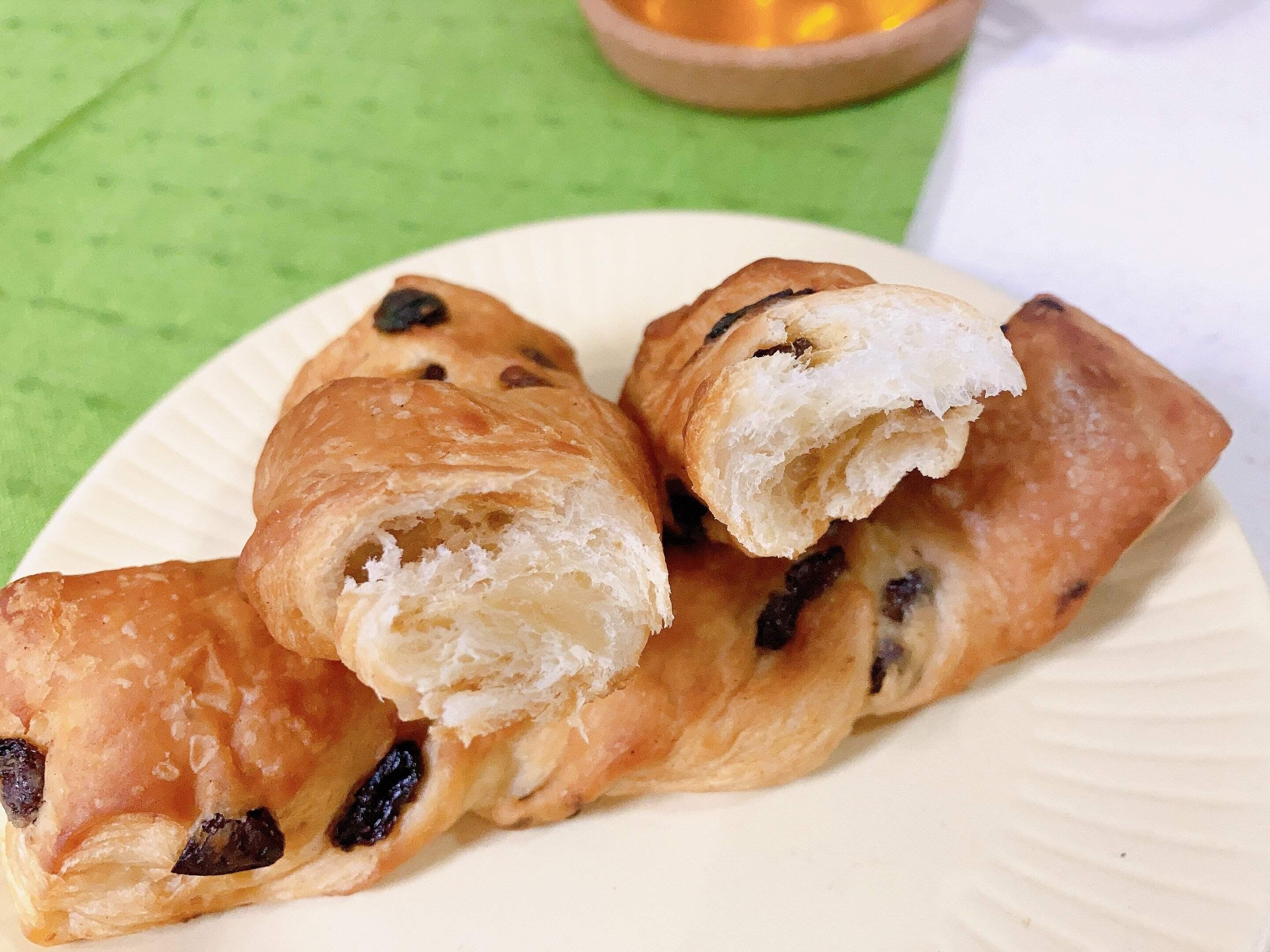 温めるとバターと小麦の香り、サクッとした生地、甘酸っぱいレーズンがアクセントになりめちゃくちゃおいしい!!