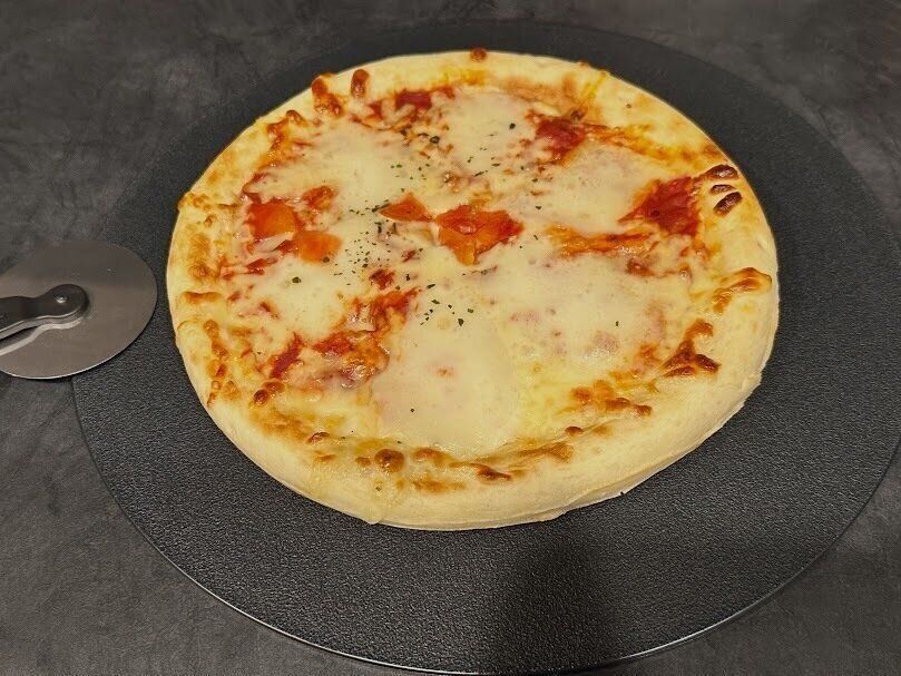 耐熱温度120℃なので、あつあつピザも安心してのせられますよ。そして、お皿だとピザをカットする際にお皿にキズがつくのを恐れながら、ピザカッターでカットしないといけませんが、これはまな板としても使えるのでキズを気にすることなく安心してカットすることができます。