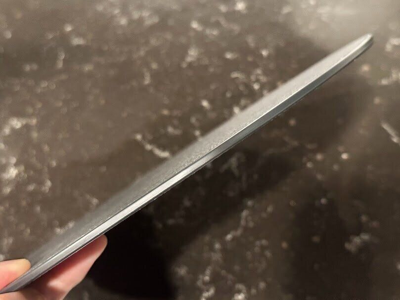 サイズは直径270mm。厚さが4mmと薄くて重さも180gとすごく軽く、扱いやすいまな板です。