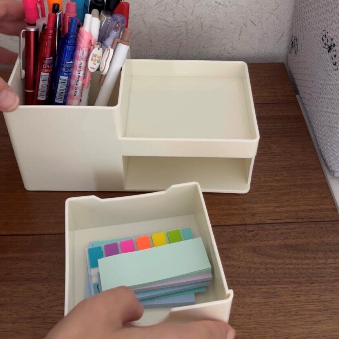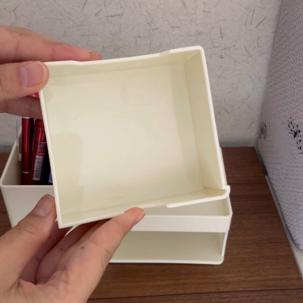 正方形でクリップや消しゴムなど、細かいものをいろいろ収納できそうです。