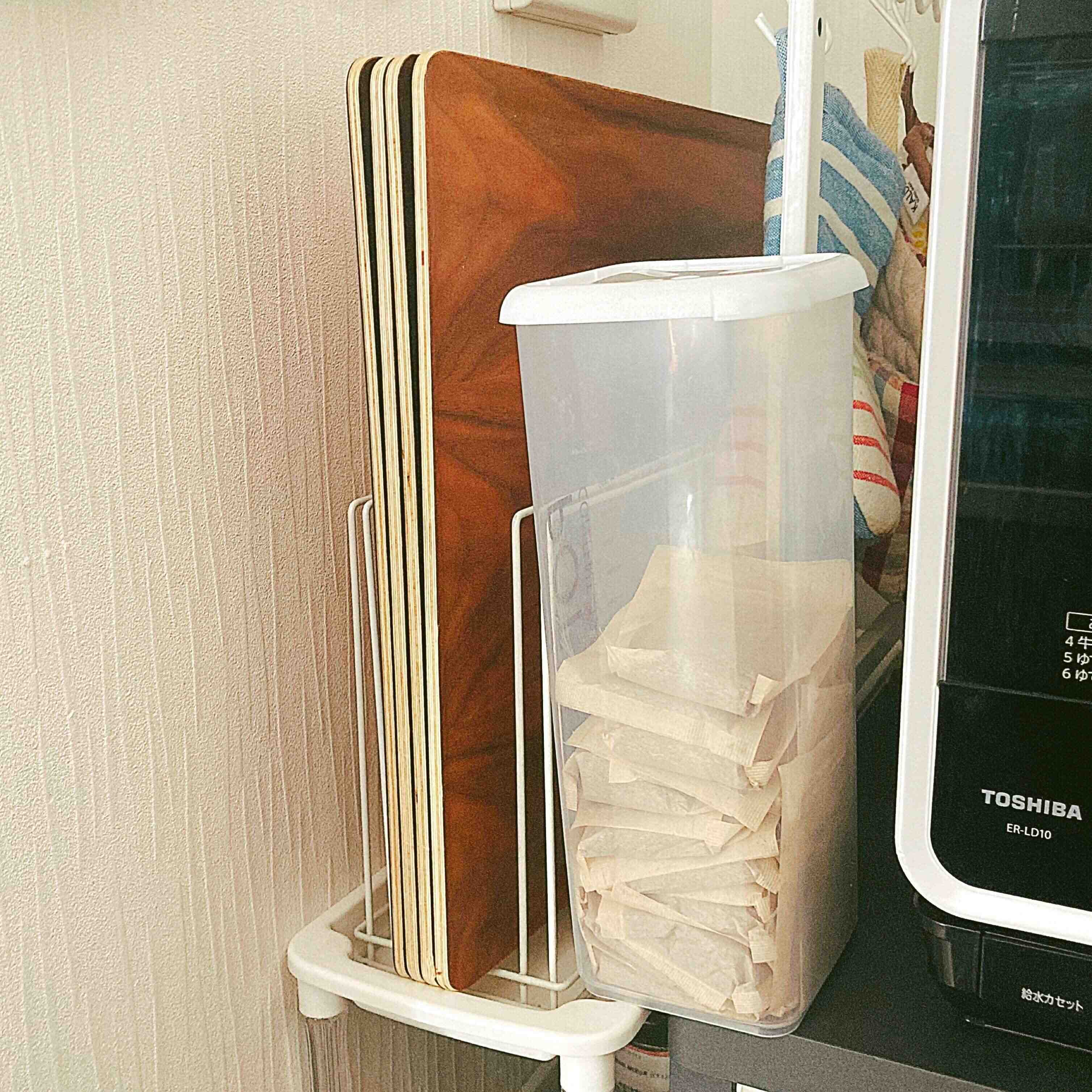 わが家は朝夜の2回麦茶をつくるので、すぐ使える電子レンジ脇のちょっとしたスペースに置いています。場所を選ばずに置けるサイズ感なのもいいですよ。