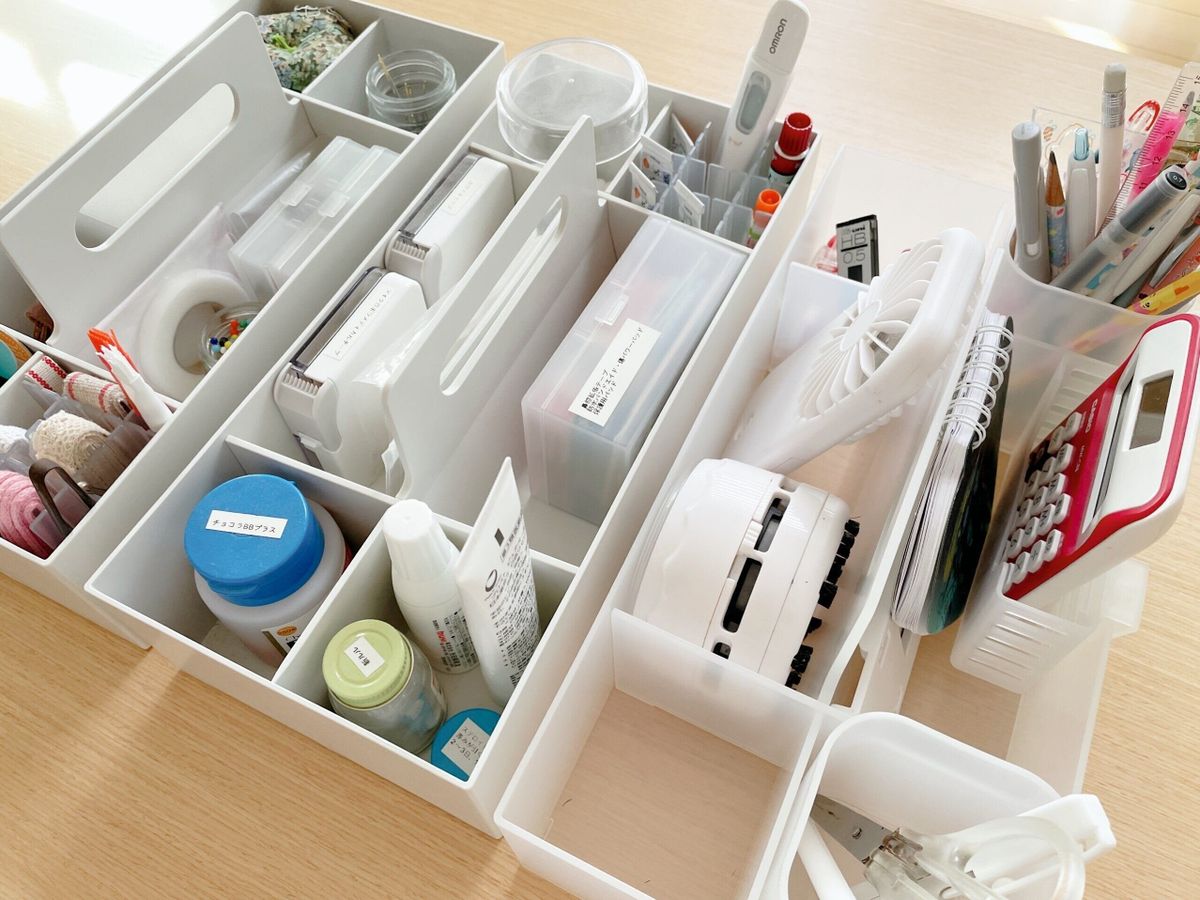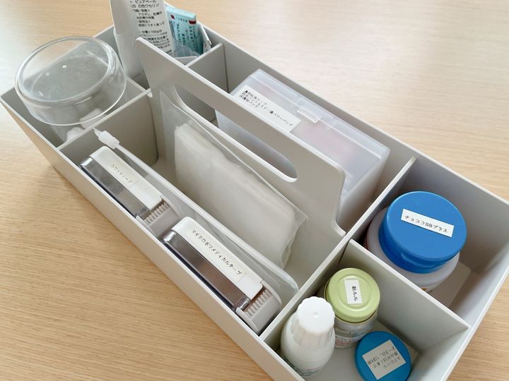 フタなしなので埃をかぶるというデメリットはあるものの、すぐに見渡せるので管理しやすいことと、その分軽いので持ち運びが楽ちんなのがメリットです。家族の中で共有するものを収納するのにとっても向いたアイテムですよ。ぜひ試してみてくださいね。
