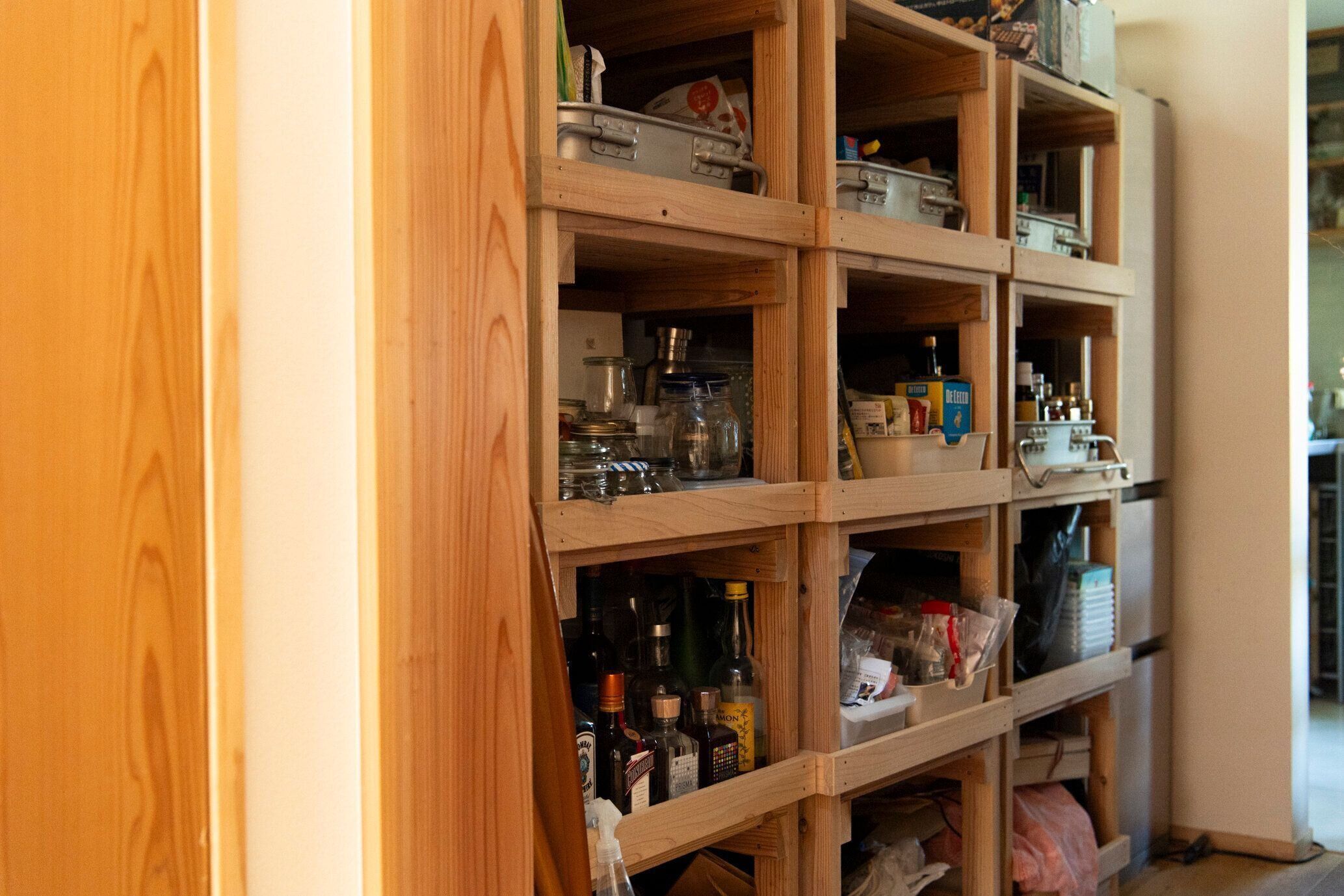 わが家には食器も大量にあるのでシンク上にも造作の食器棚がありますが、取り出しやすいこの食器棚にはよく使う食器たちが集まっています。旅先で出会ったものも多く、現地での思い出も詰まった大切なものばかりです。