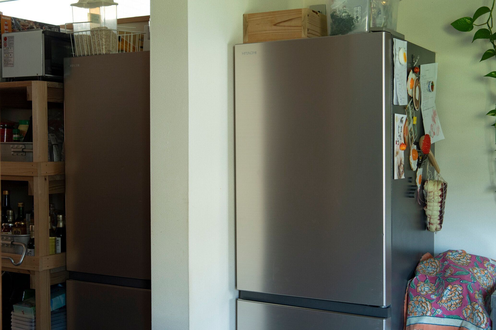 よく驚かれるのですが、大きい冷蔵庫が置けないこともあって、コンパクトな同じ冷蔵庫を2つ並べることにしました。