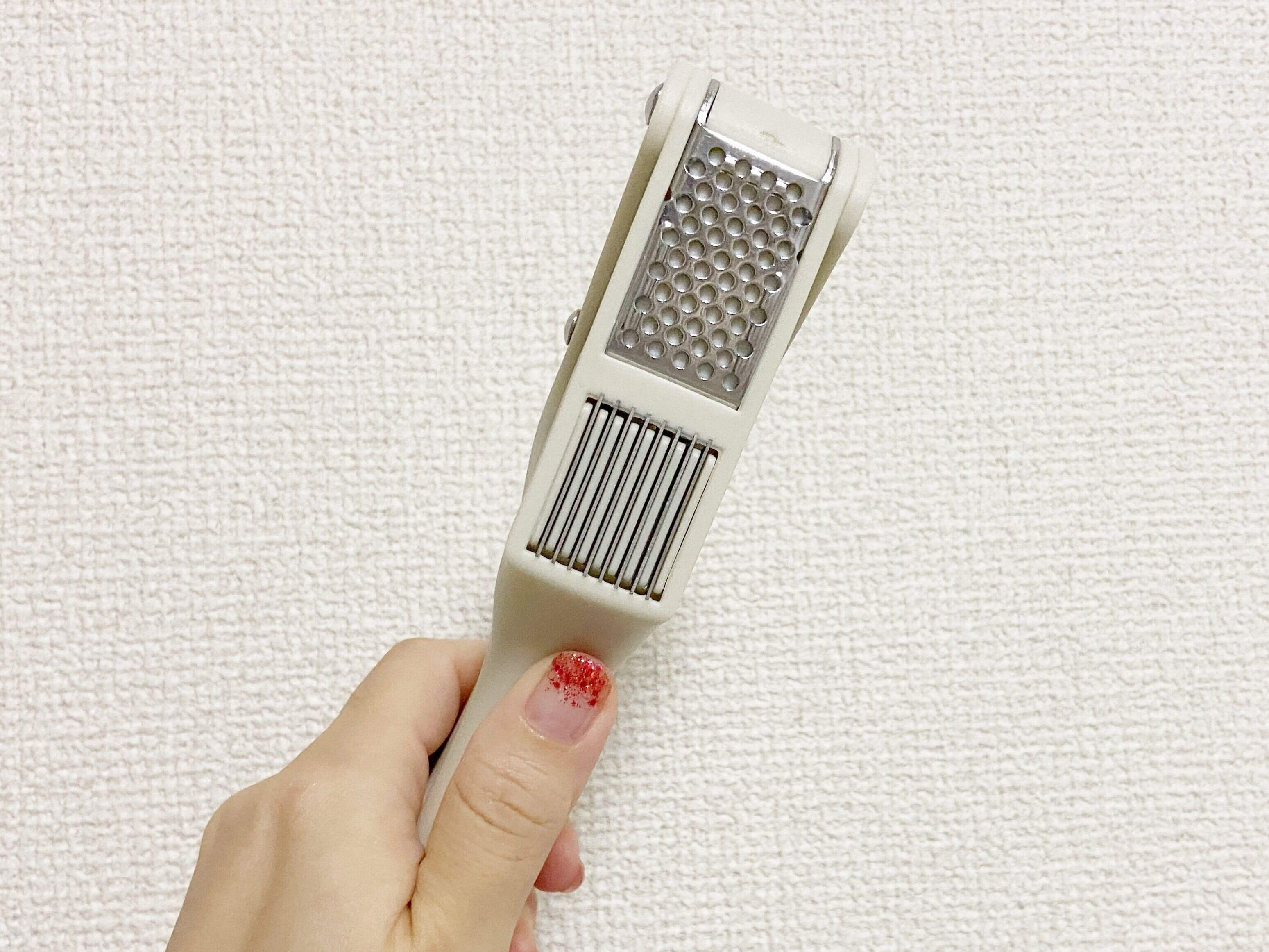 「ガーリックプレス&スライサー」(550円)はその名の通り、にんにくを調理するのに特化したキッチンアイテムです。“こんなアイテムあったらいいな……”が実現したおすすめのキッチンアイテムです。