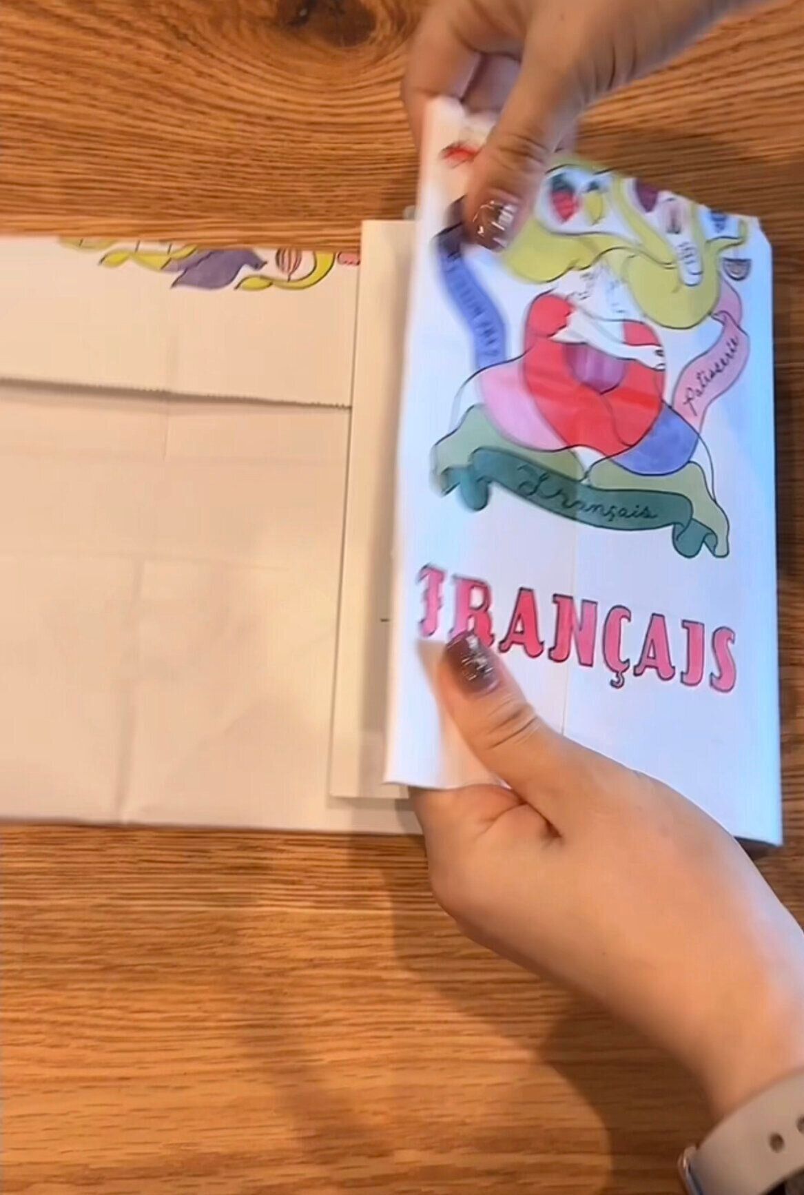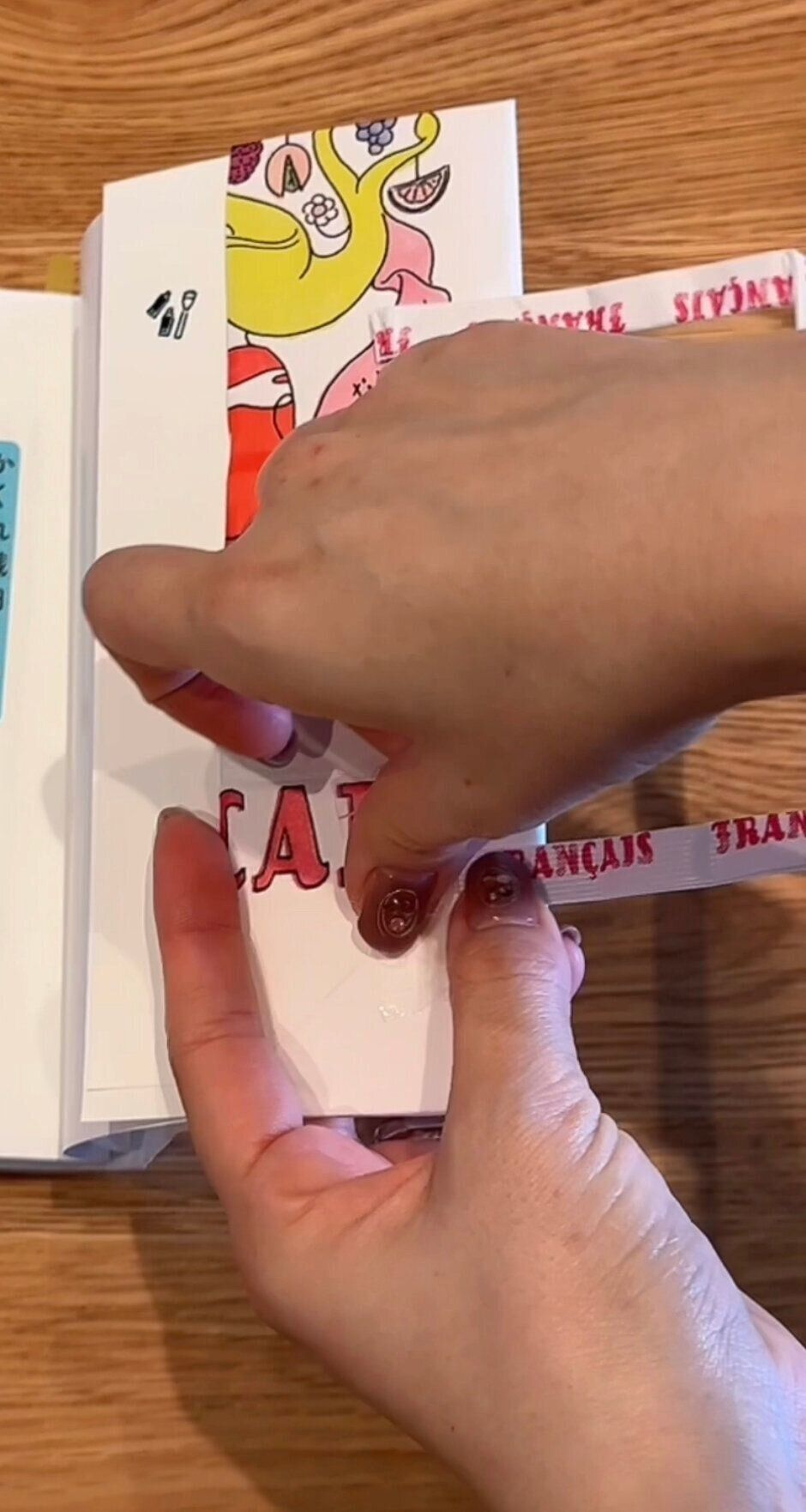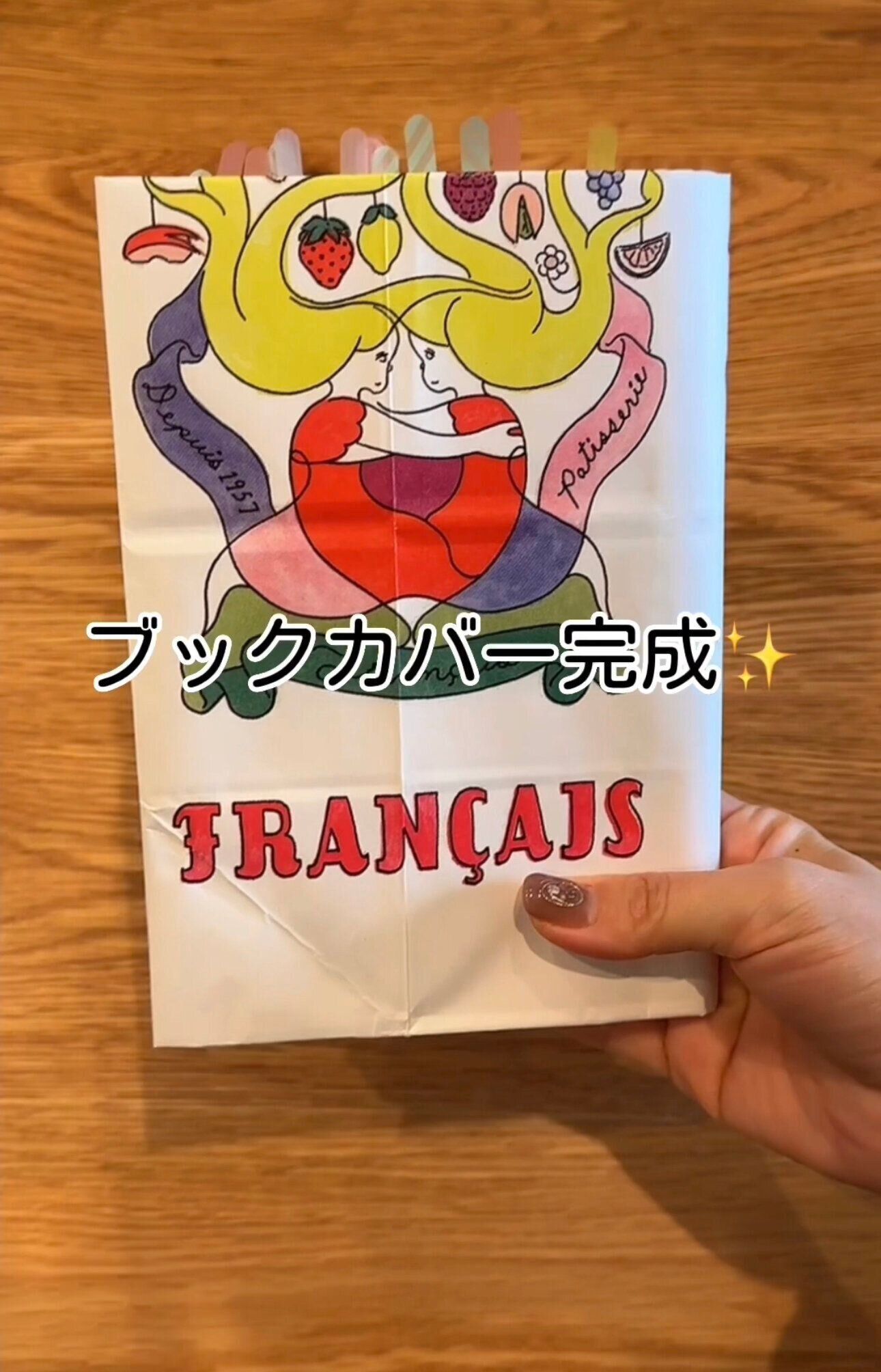 先ほどカットしておいた持ち手をブックカバーに取り付けると、