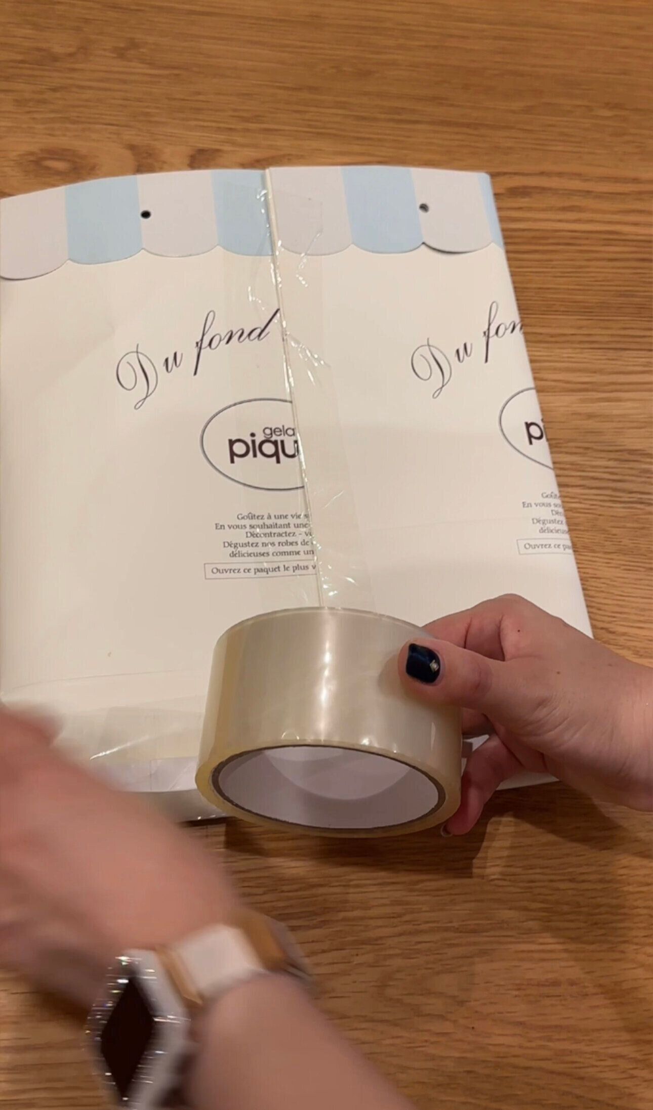 3 入れたいモノを入れて、サイドや底をテープで固定する。