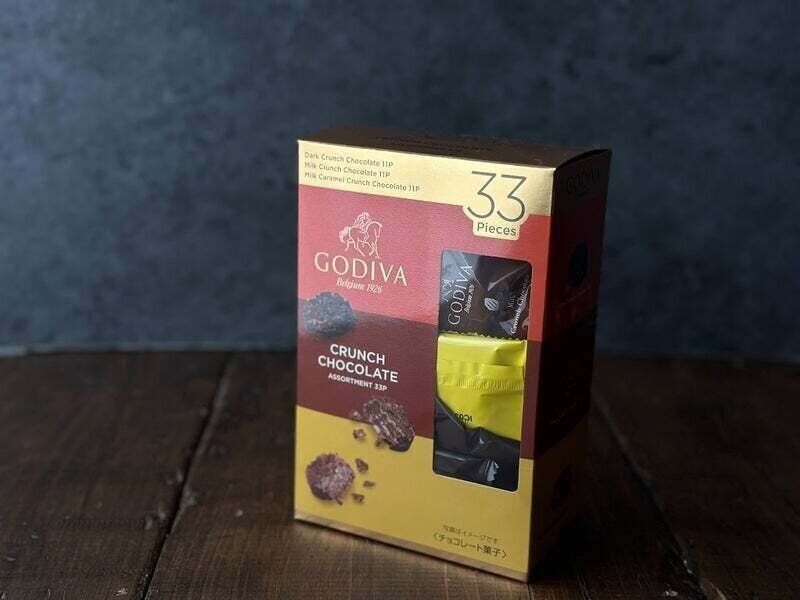 どのアソートにも、各11個ずつ、合計33個のクランチチョコレートが入っていて、ザクザクっとした食感と、口溶けのよいチョコレートの風味が最高!