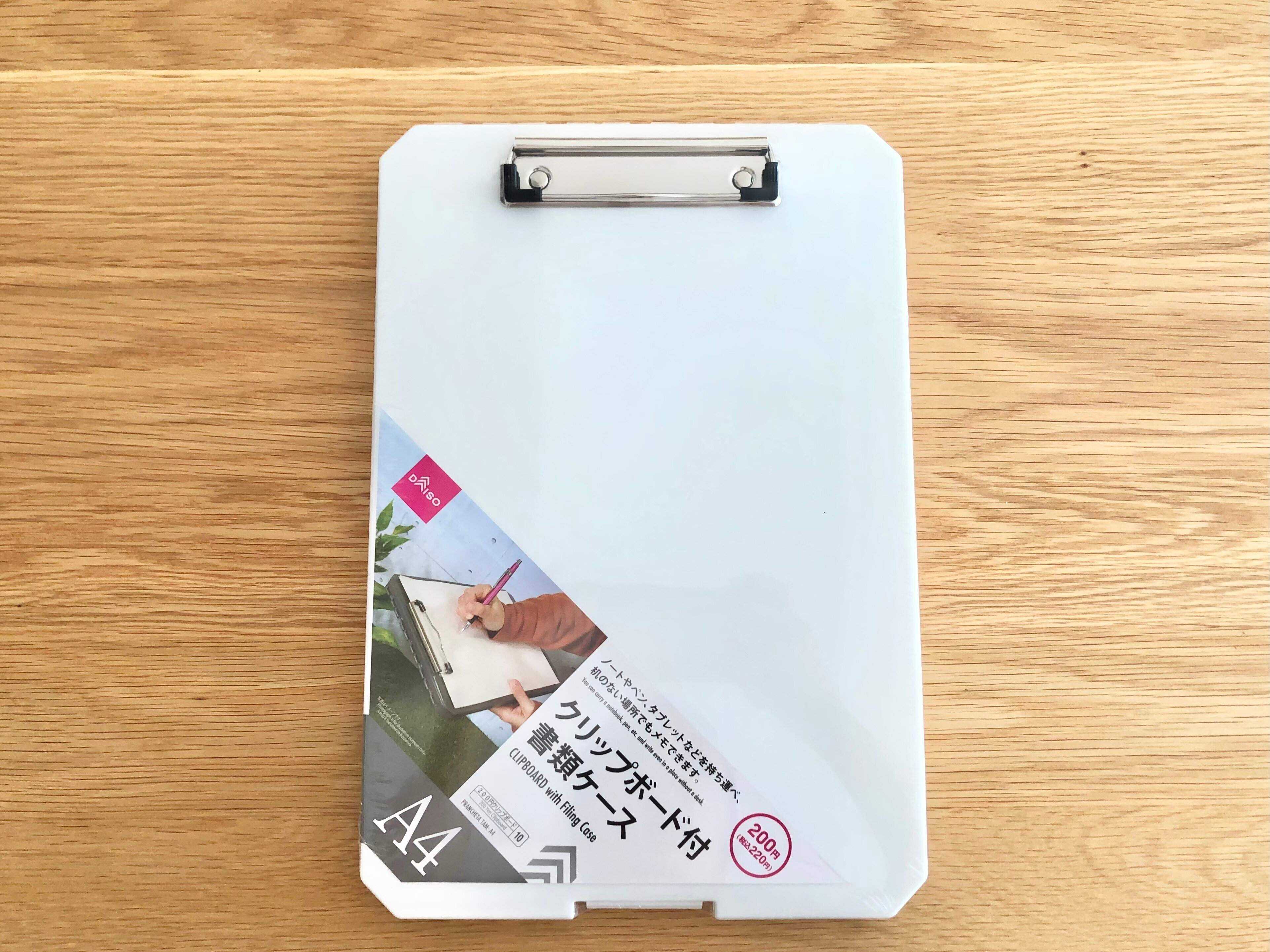 ご紹介するのは、ダイソーの「クリップボード付書類ケース」という商品です。