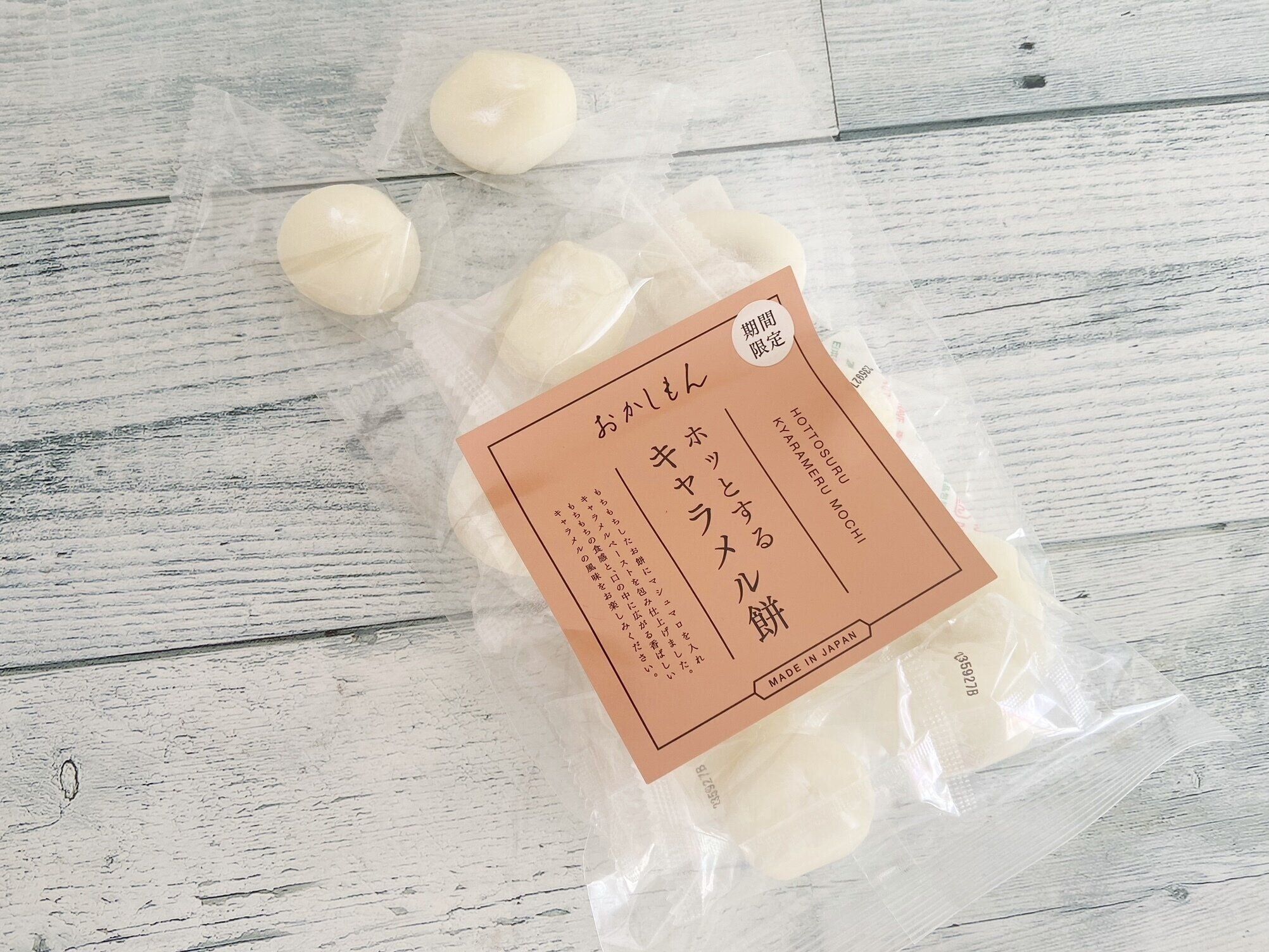 「ホッとするキャラメル餅」(378円)は大人気の餅シリーズの期間限定スイーツ。1つ1つ個包装になっているので食べたいときに食べたい量だけ食べられます。