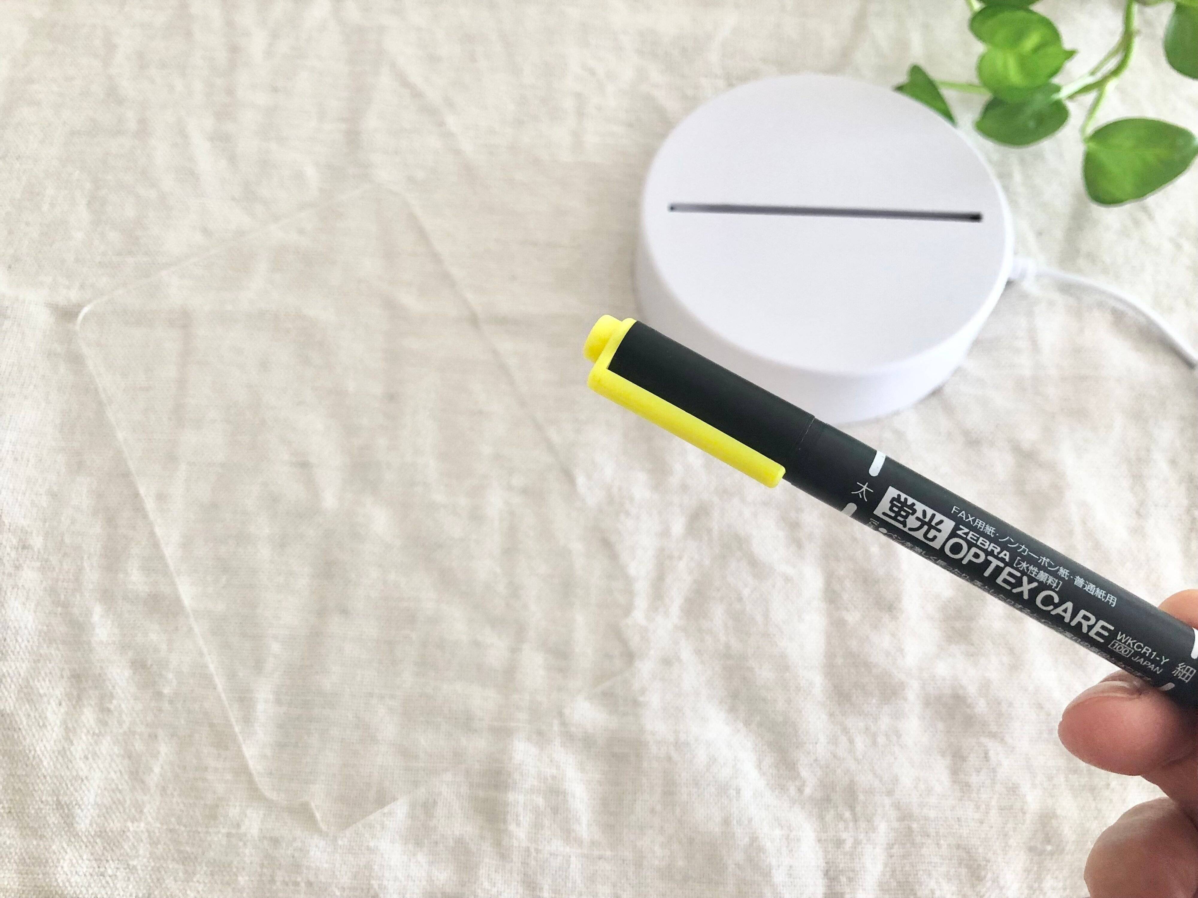 そして、アクリルボードに文字を書く為に必要な、水性蛍光マーカーを用意します。