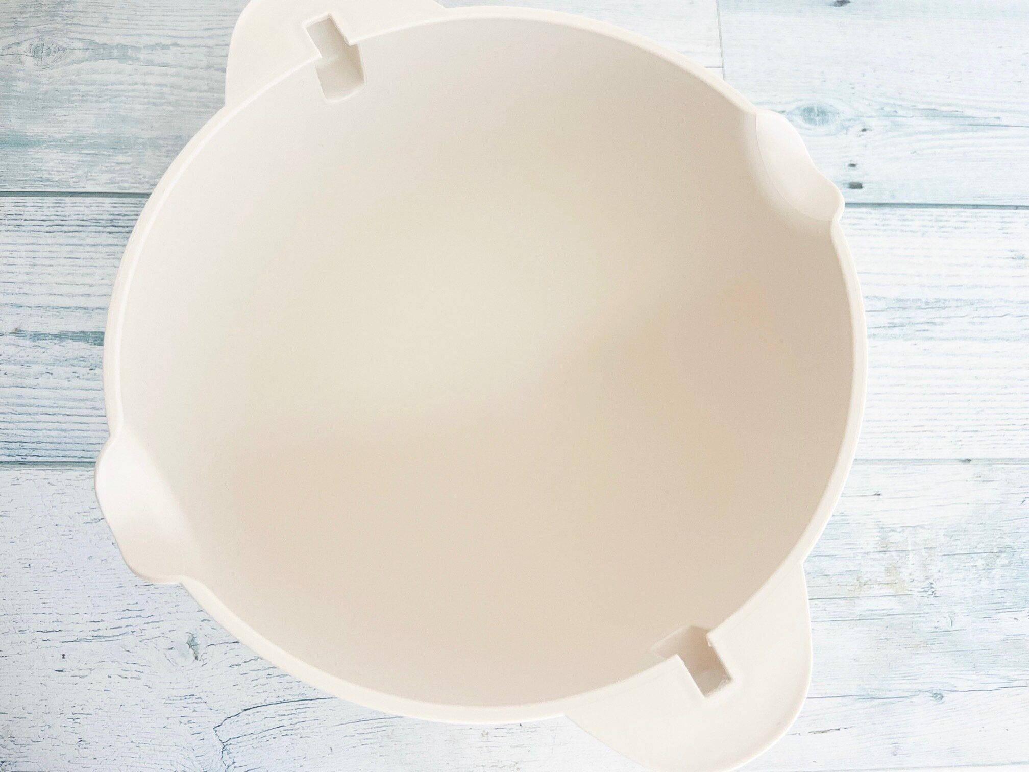 新バージョンの「形状」は、ほかの調理器具とも相性のよいまん丸な印象のデザインに改良されました。もともと自宅にあったボウルなどと重ねてもおさまりがよく、収納時の小さな悩みを解決してくれています。収納場所が少ないキッチンなので、とても助かっている改良点です。