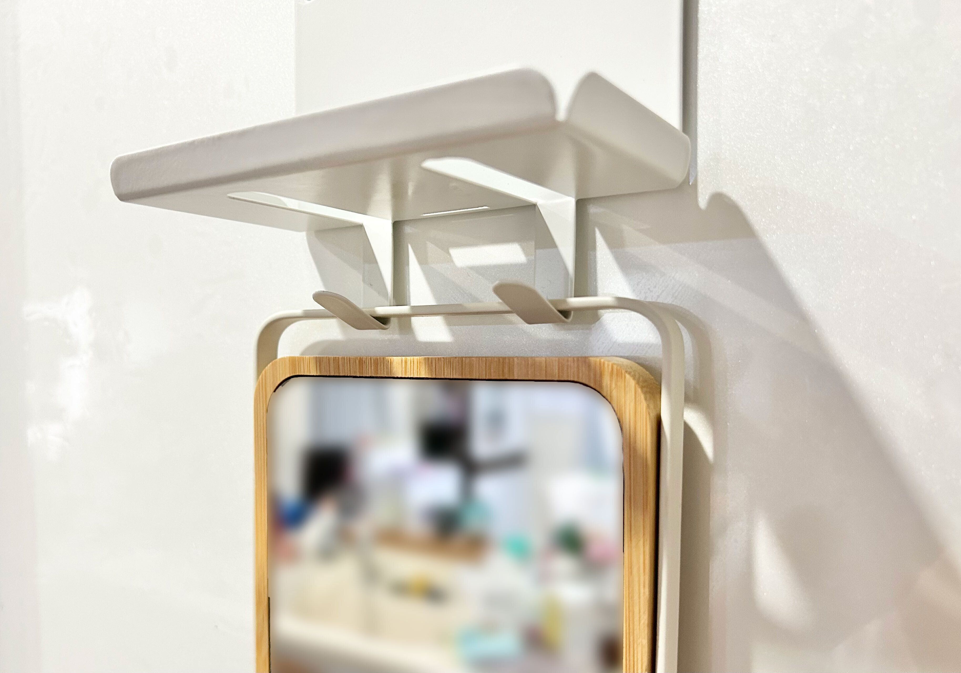 フックのカラーもホワイトなので、スタンドミラーに違和感なく馴染みますよ。