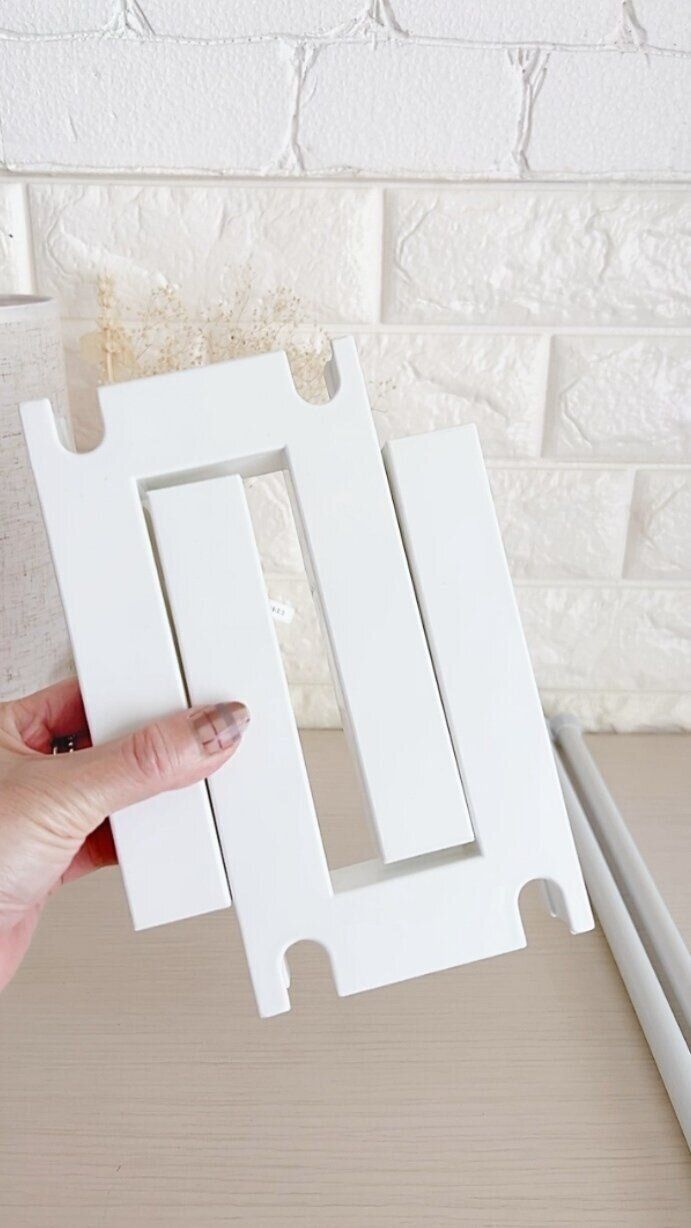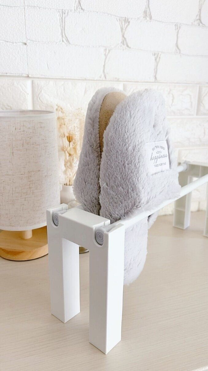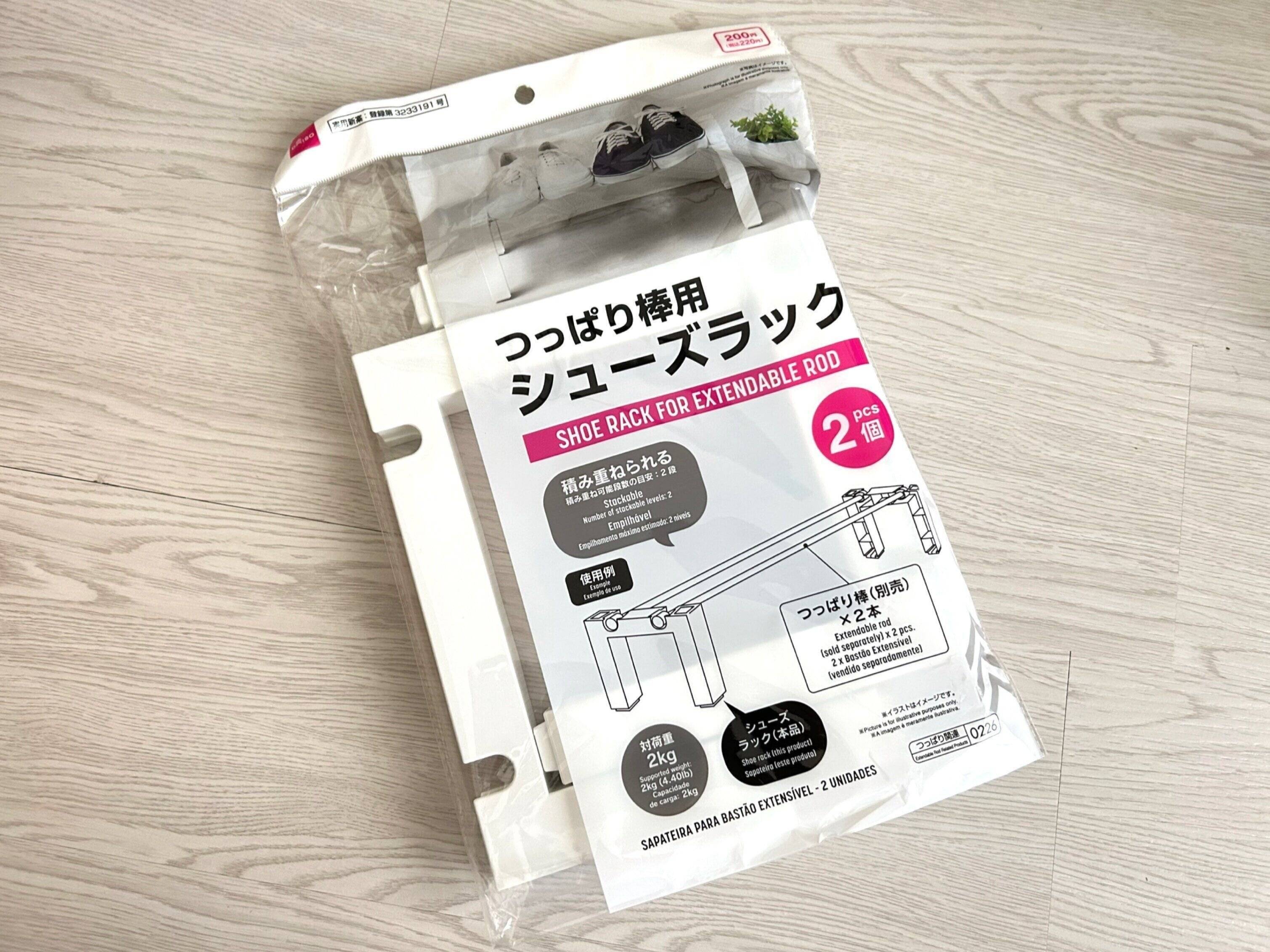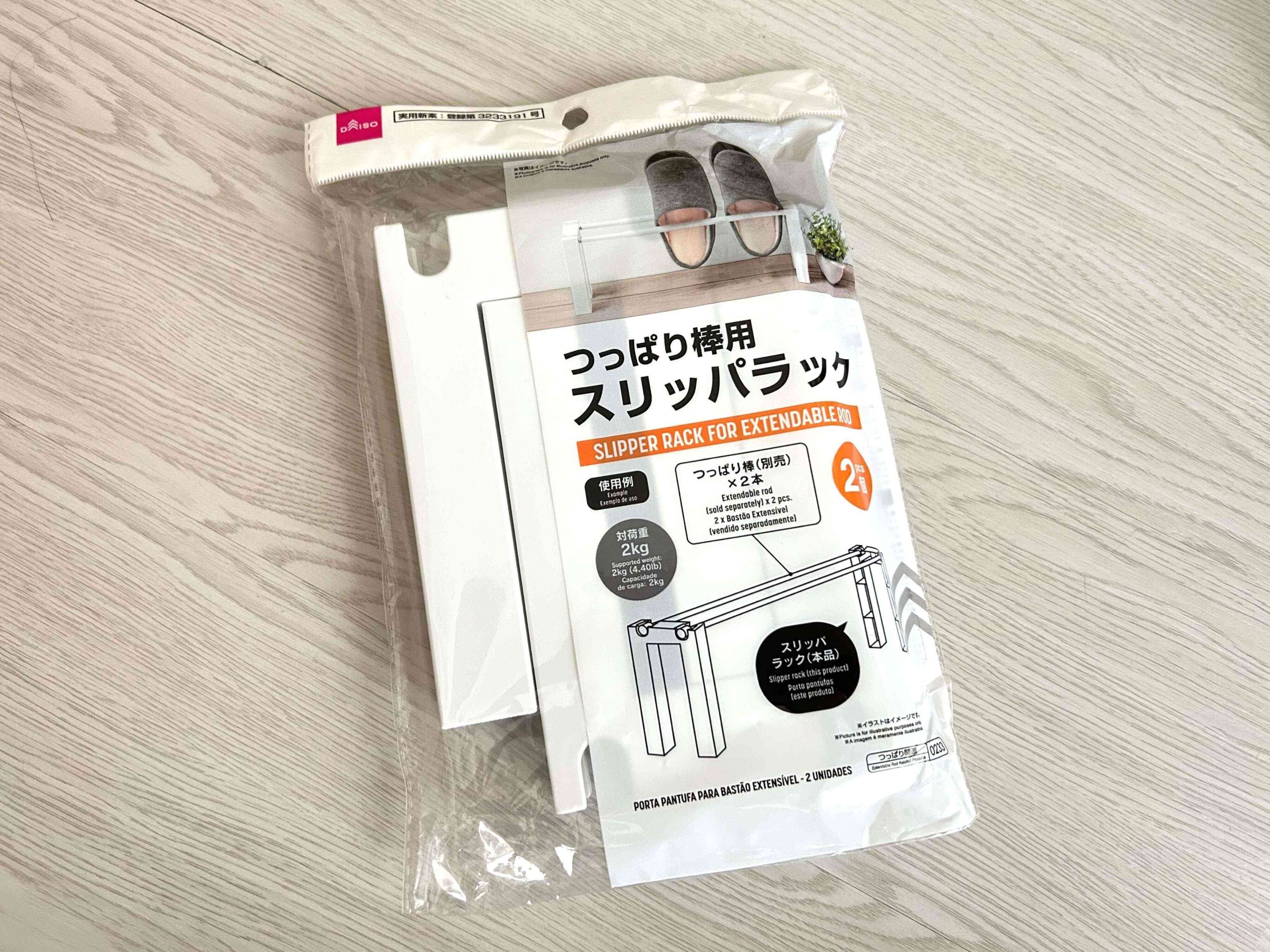 これに別売りのつっぱり棒2本を使って、スリッパラックが組み立てられます。