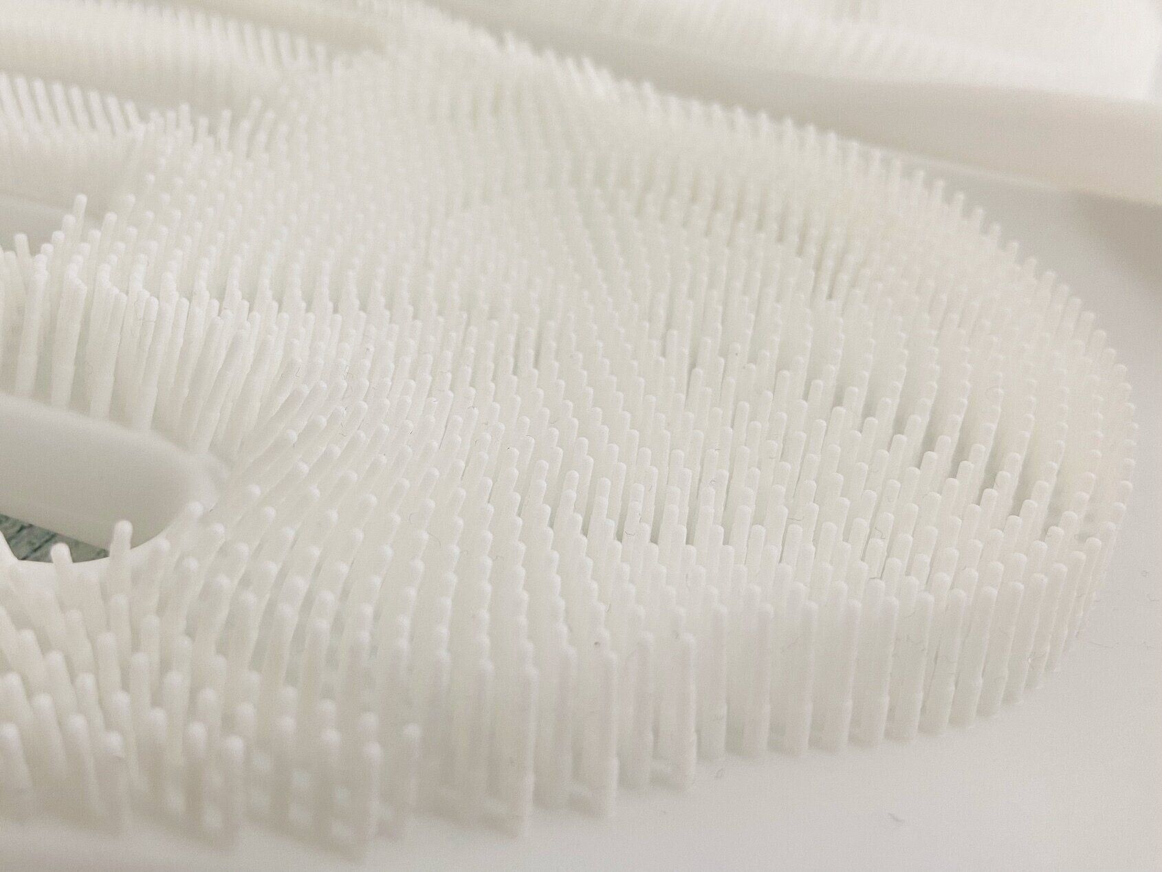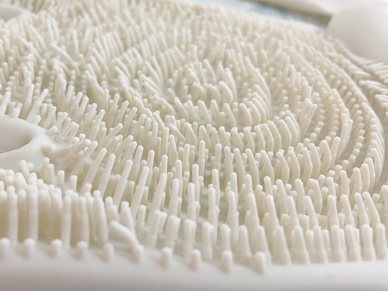 シリコーンブラシ手袋の一番のポイントといっても過言ではない手のひらのブラシもリニューアルされています。旧デザインはブラシの長さは均一でした。