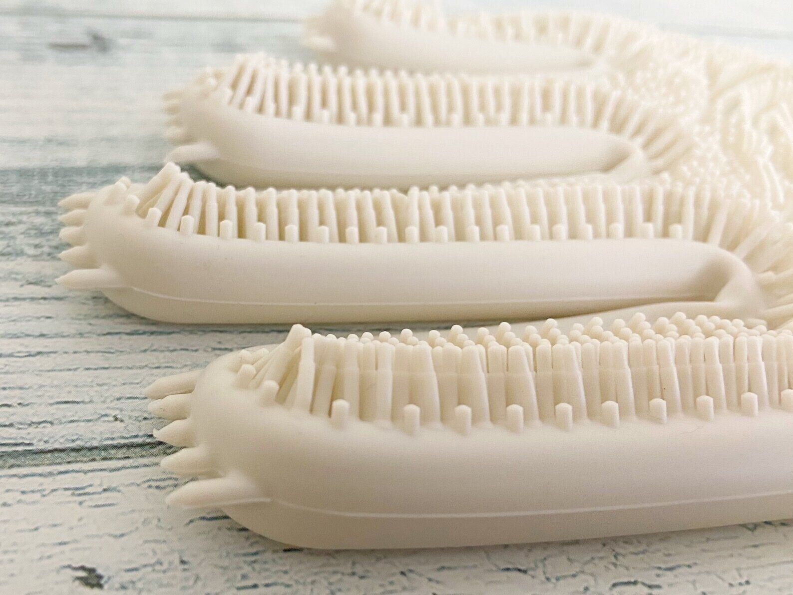 新デザインでは指先にもブラシをプラス。指先にブラシがあることでお弁当箱などの細かい箇所の汚れを洗いやすくなっています。