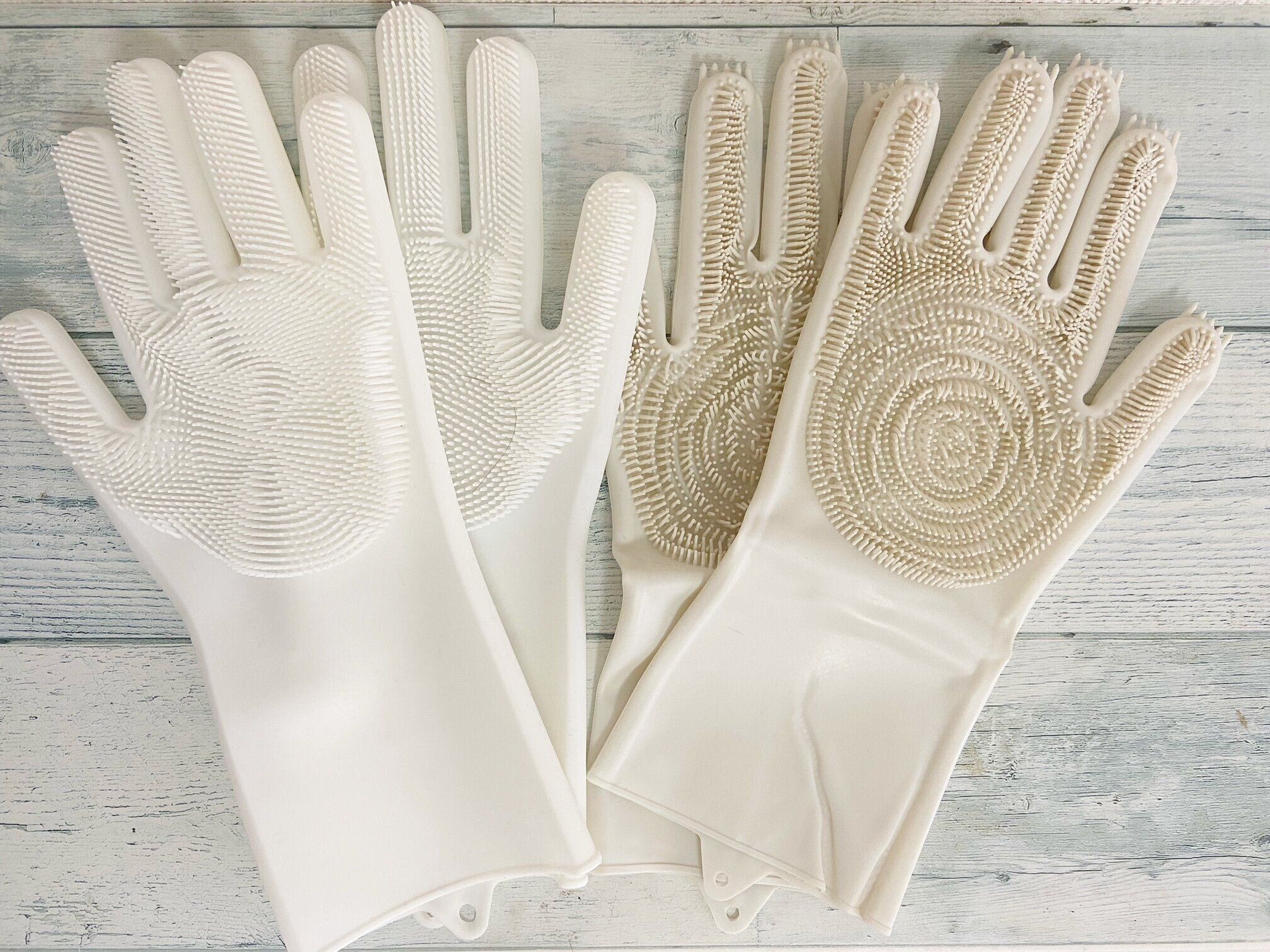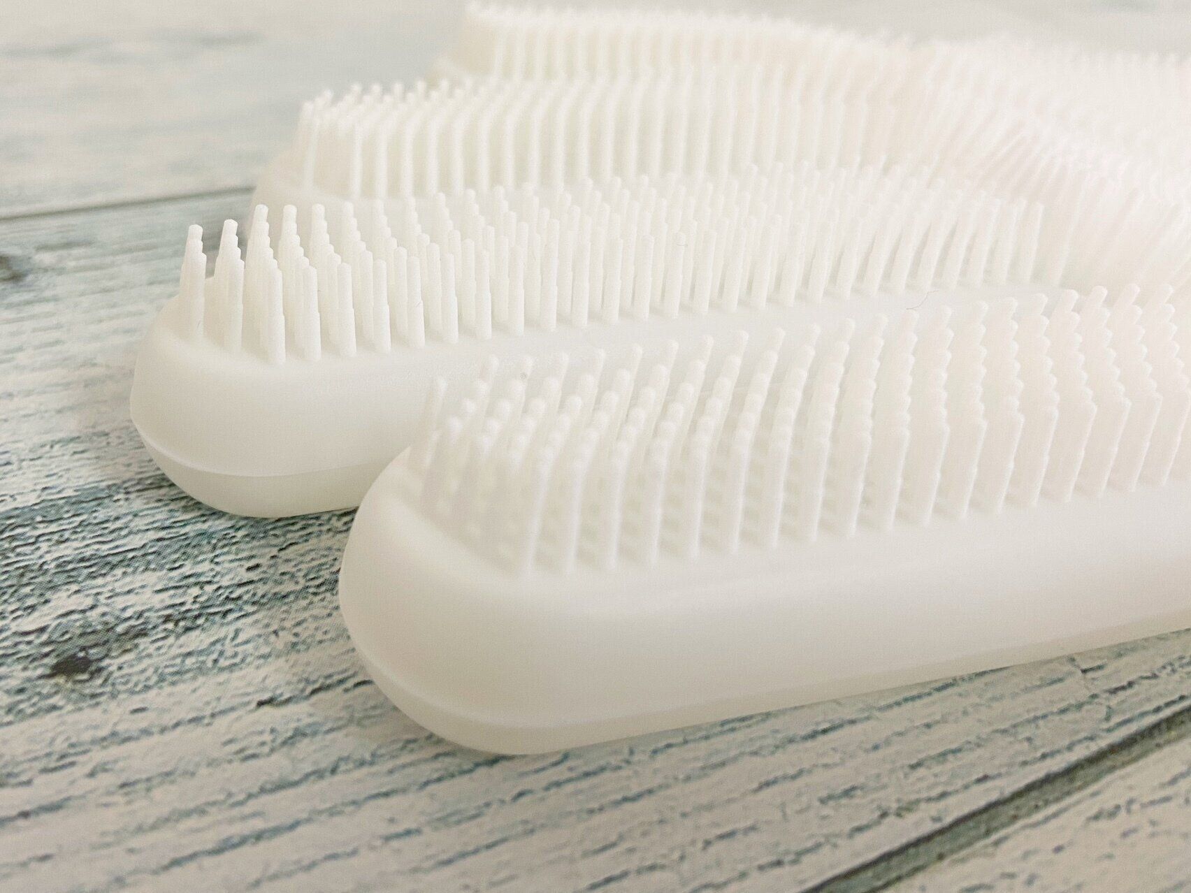 新旧デザインを比べた時にすぐに気づく違いは本体のカラー。旧デザインのシリコーンブラシ手袋は本体のカラーはホワイトでした。