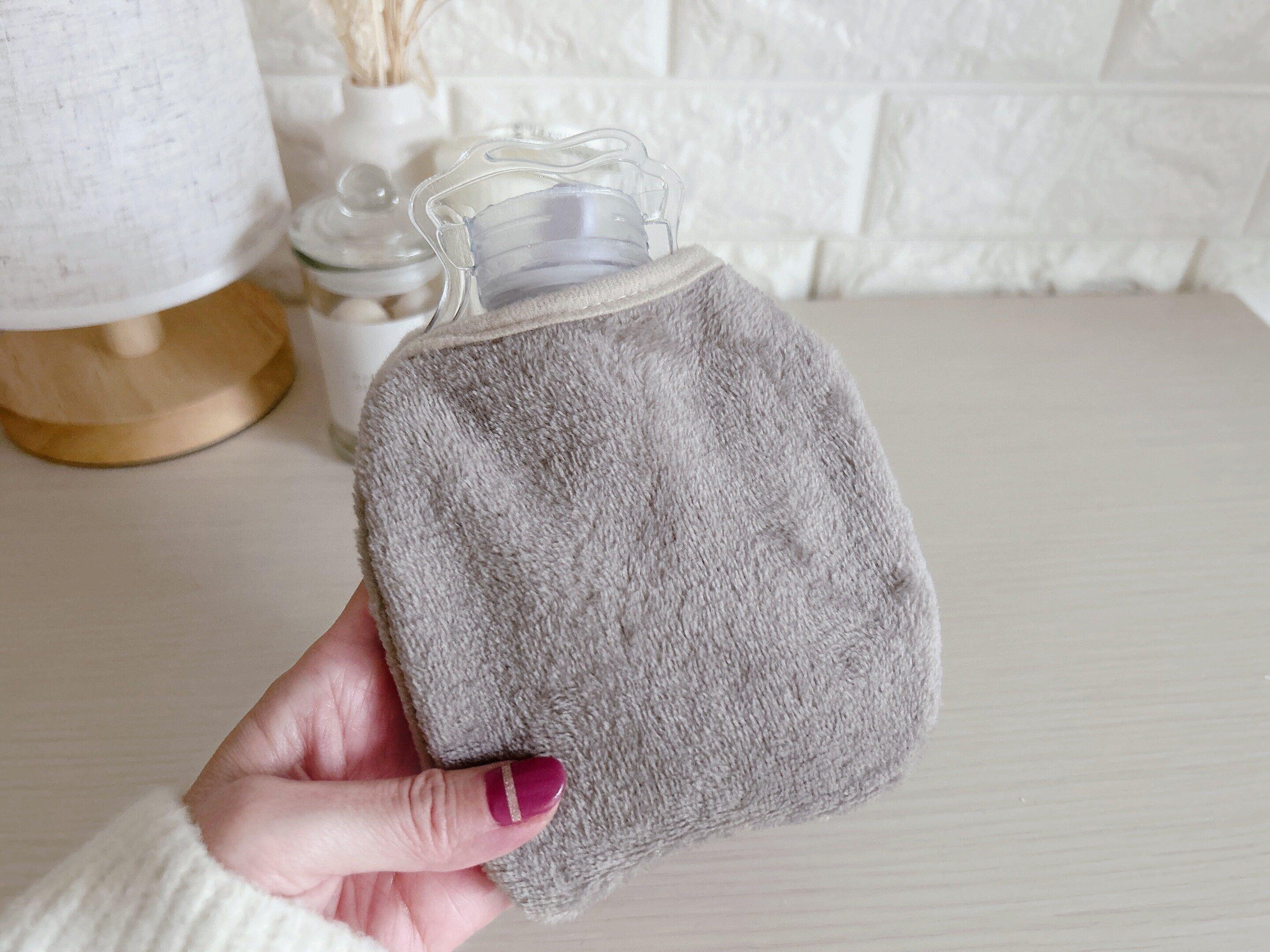 湯たんぽにお湯を入れる前に、ソフト湯たんぽカバーに入れておくと、手が熱くなりにくいです。