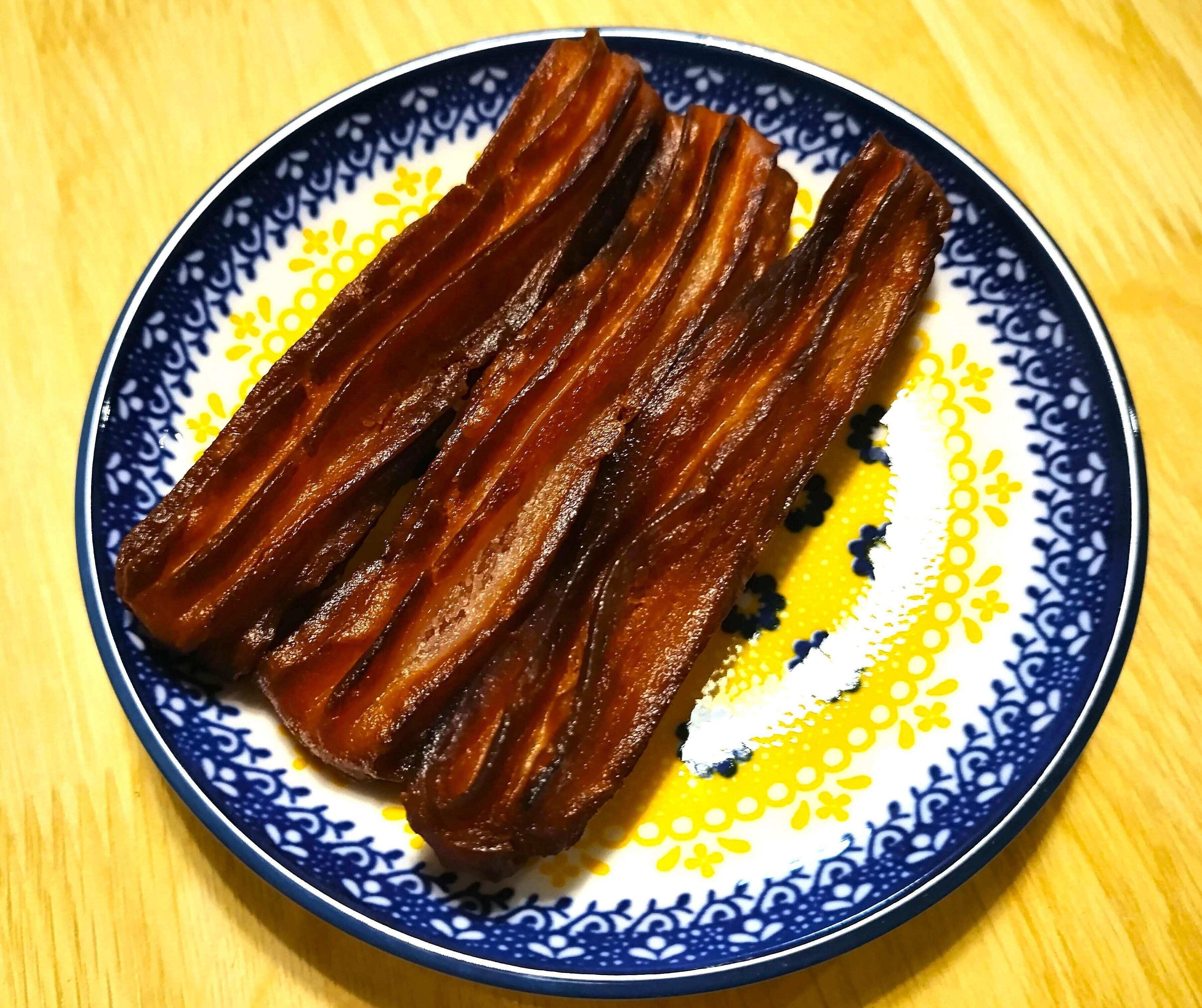 これくらい揚げると、ザクザクした食感を楽しめます(わが家の子どもたちは、むしろこれくらいの揚げ具合の方が好きだと言っていました)。「チューロス」は、揚げ上がりもやや柔らかいです。3分くらい油切りすると、外側カリッとして中はややもっちりという食感に。