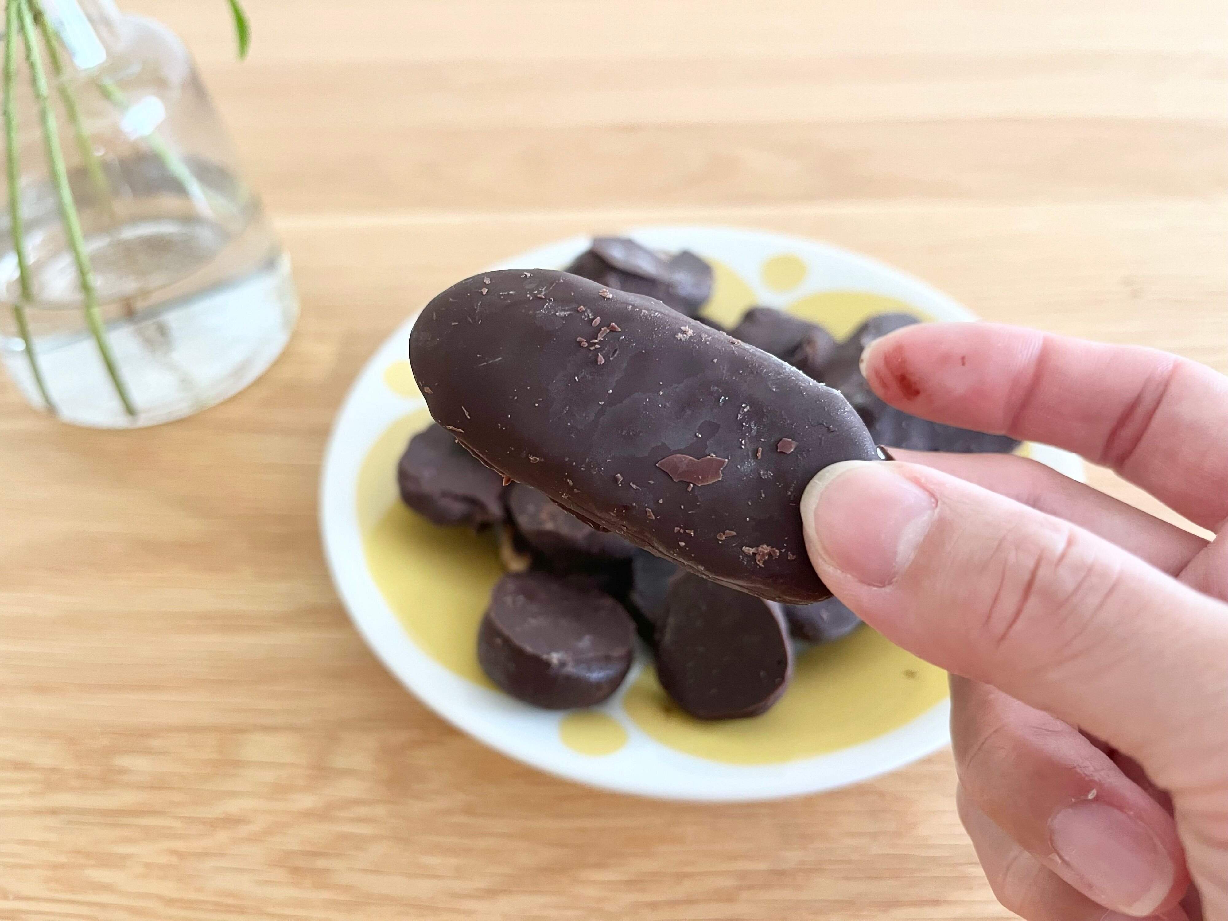 では、早速食べてみたいと思います。チョコレートはビターなチョコレートを使用しているのでほろ苦く、優しいバナナの甘みと相性抜群!コーティングされたチョコレートはパリッとしていて、少しトロッと半解凍されたバナナの食感がクセになります。