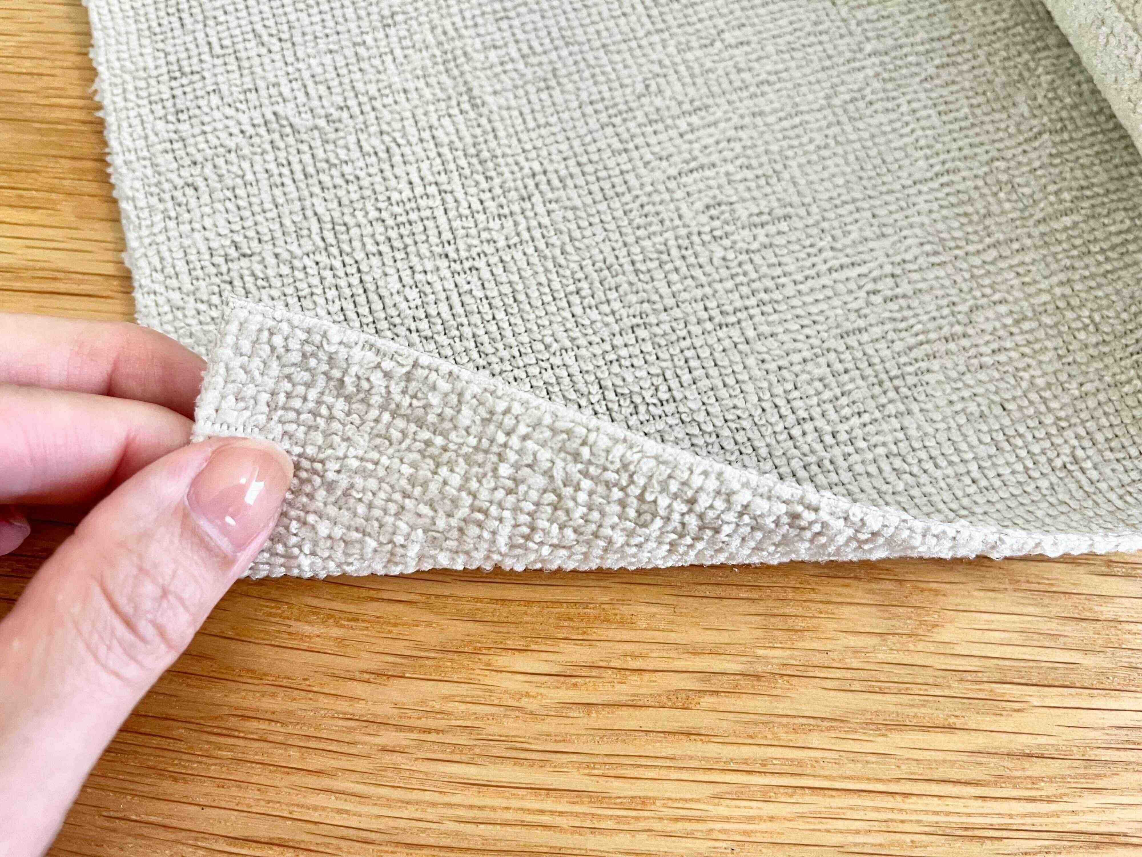 生地はポリエステルとナイロンを使用していて、ふんわり柔らかい肌触り。使い捨ての商品ですが、厚みがあるので洗えば何度も繰り返し使うことができます。