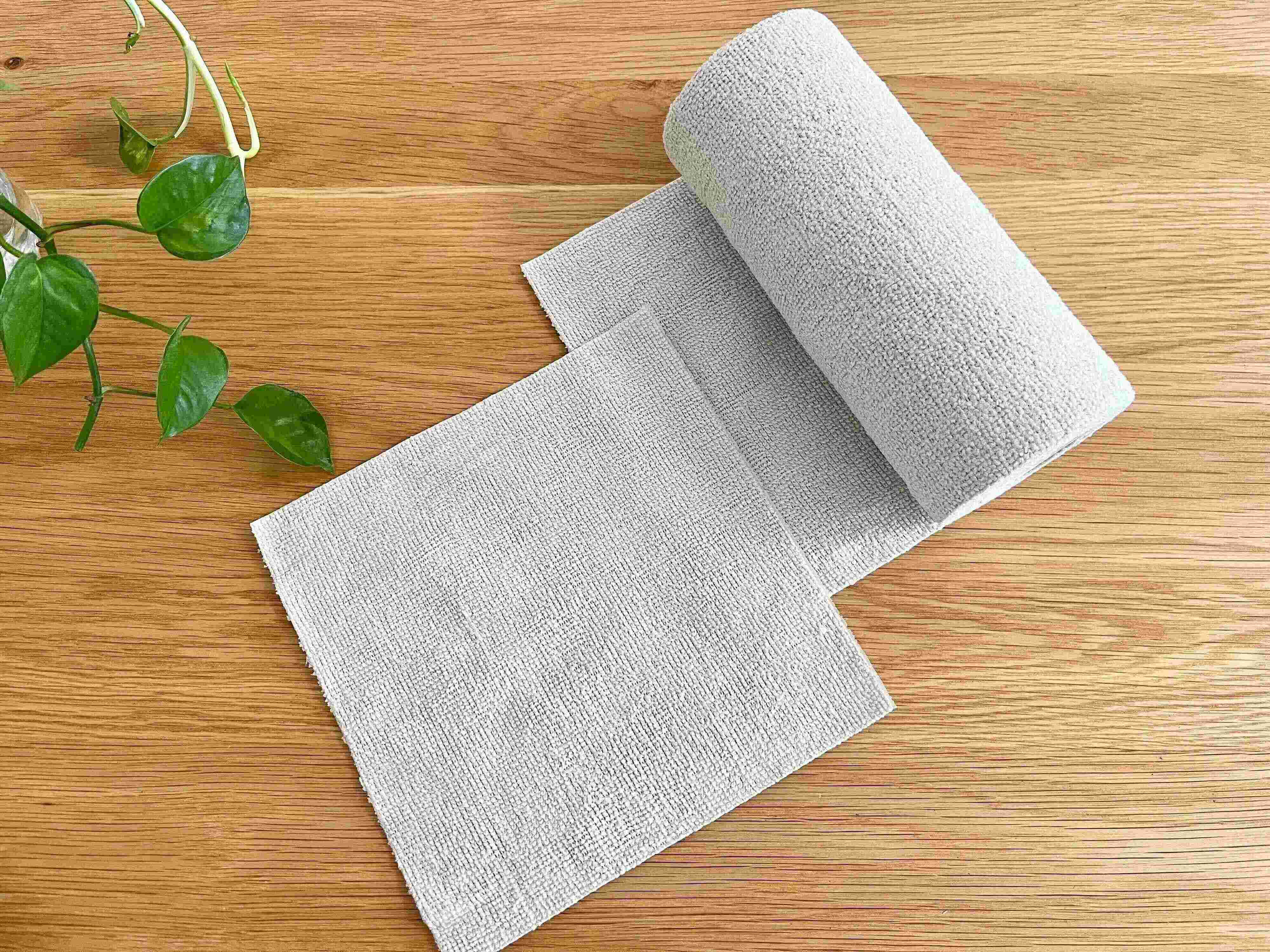 「マイクロファイバーロールふきん」は、速乾性や吸水性に優れ、家中のあらゆる場所のお掃除にマルチに使えるのが魅力です。乾拭きする時は細かい埃をしっかりキャッチしてくれ、濡らして拭き掃除をする時は水だけでもしっかり汚れを拭き取ることができる、まさに万能ふきん!