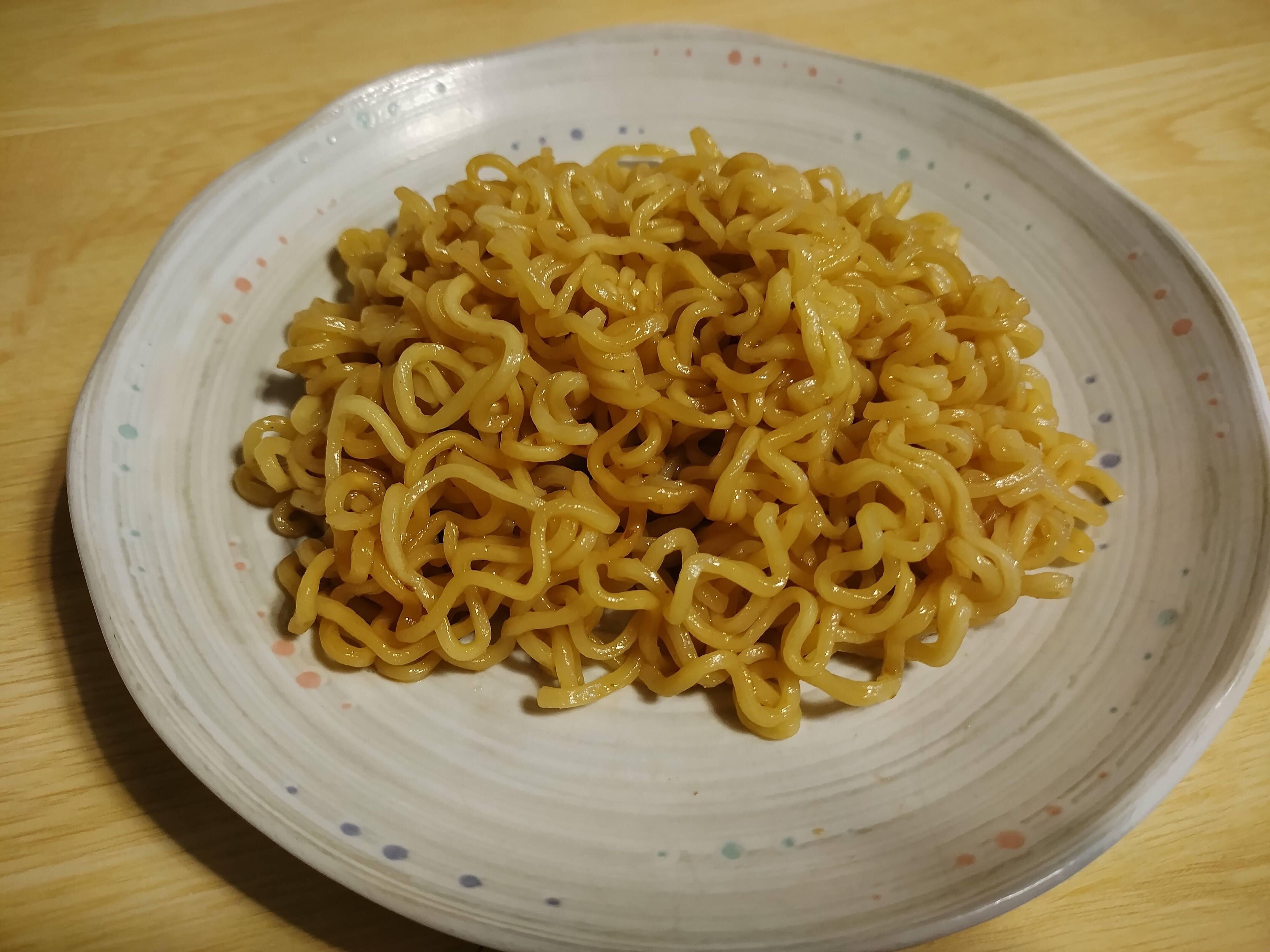 調味料の開け方だけ気をつければ、作り方はとっても簡単。麺を熱湯で3分ほど茹でたらザルなどで湯切りし、粉の調味料と液体の調味料をかければ完成です。