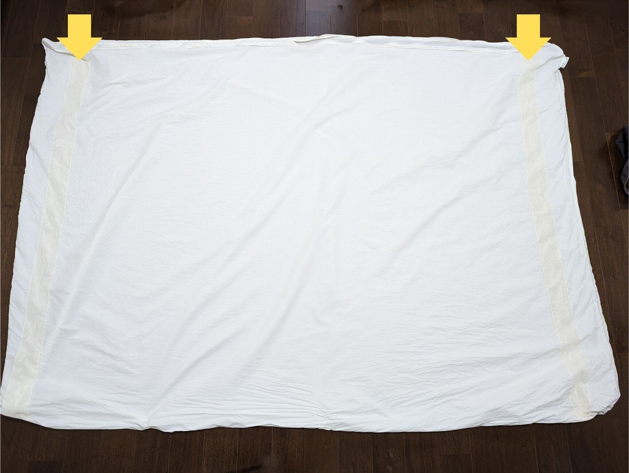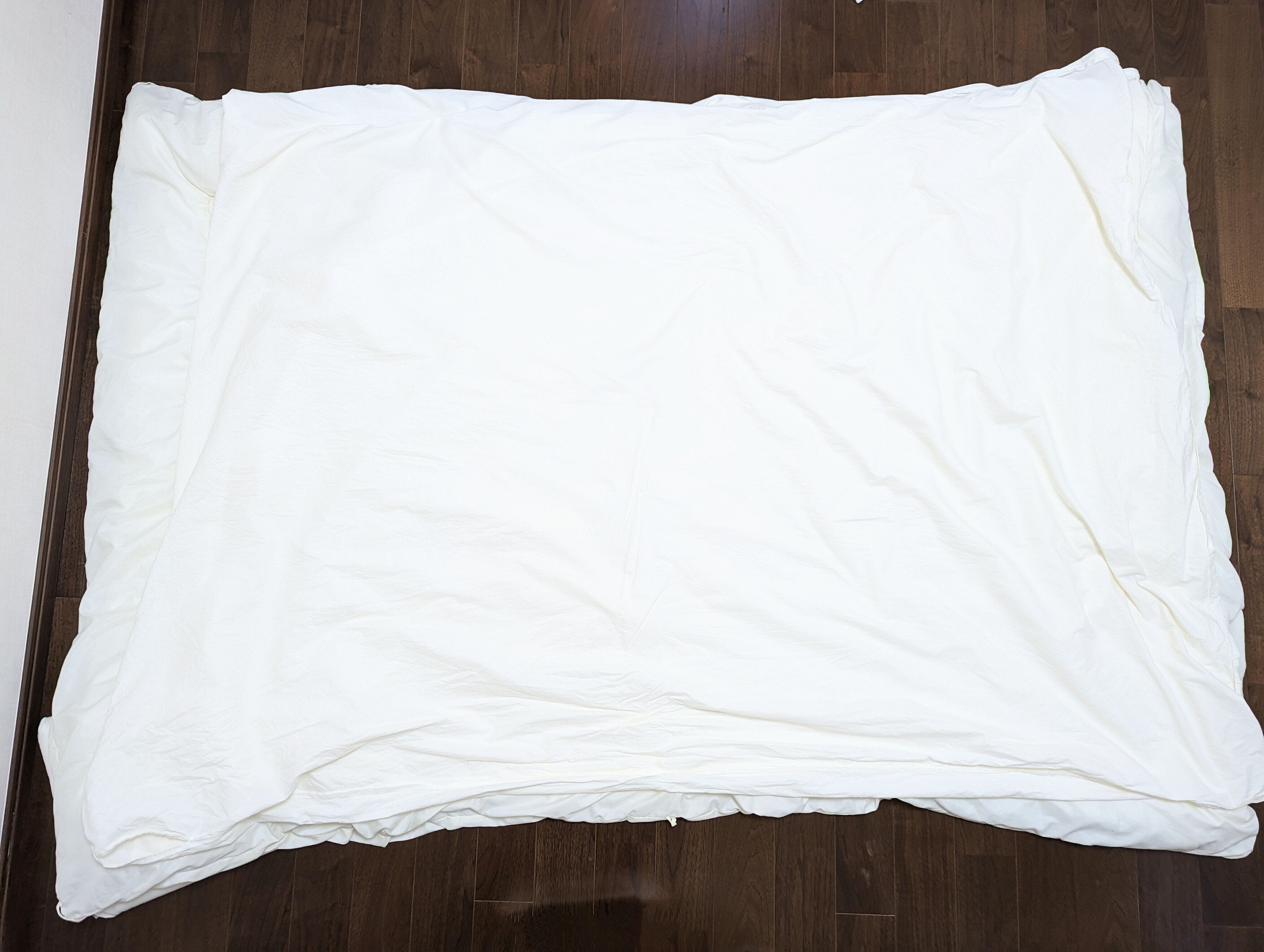 1. カバーを裏返して掛け布団の上に重ねる。