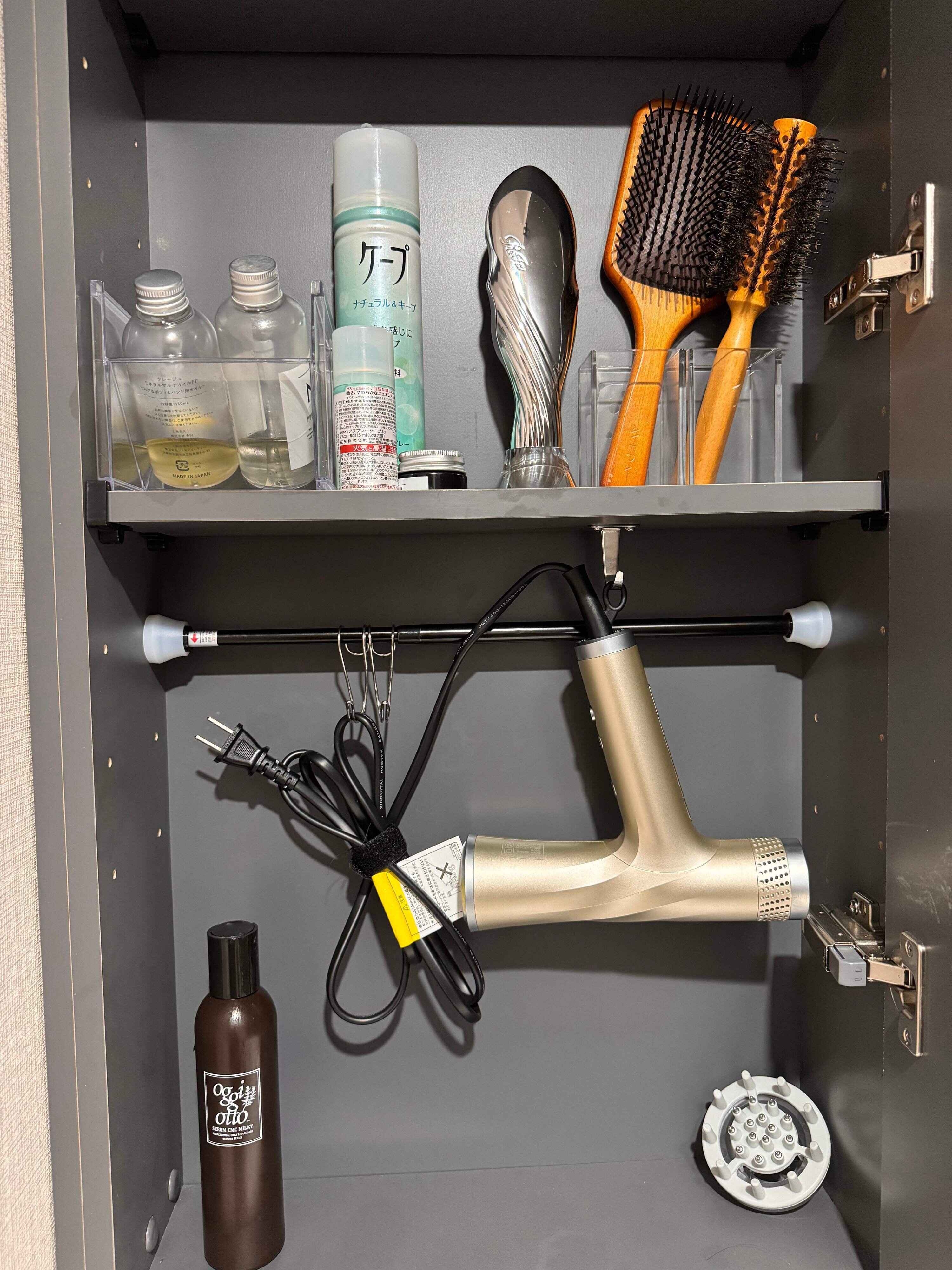 ドライヤー収納は、つっぱり棒が楽ちん