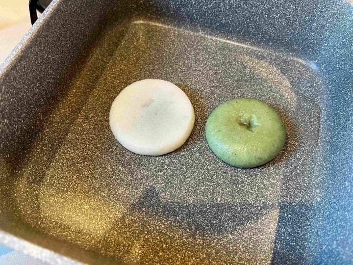 おもちが膨らんでしまい、なんとも不恰好な感じになってしまいましたがこれはこれでおもちらしくていいですね。