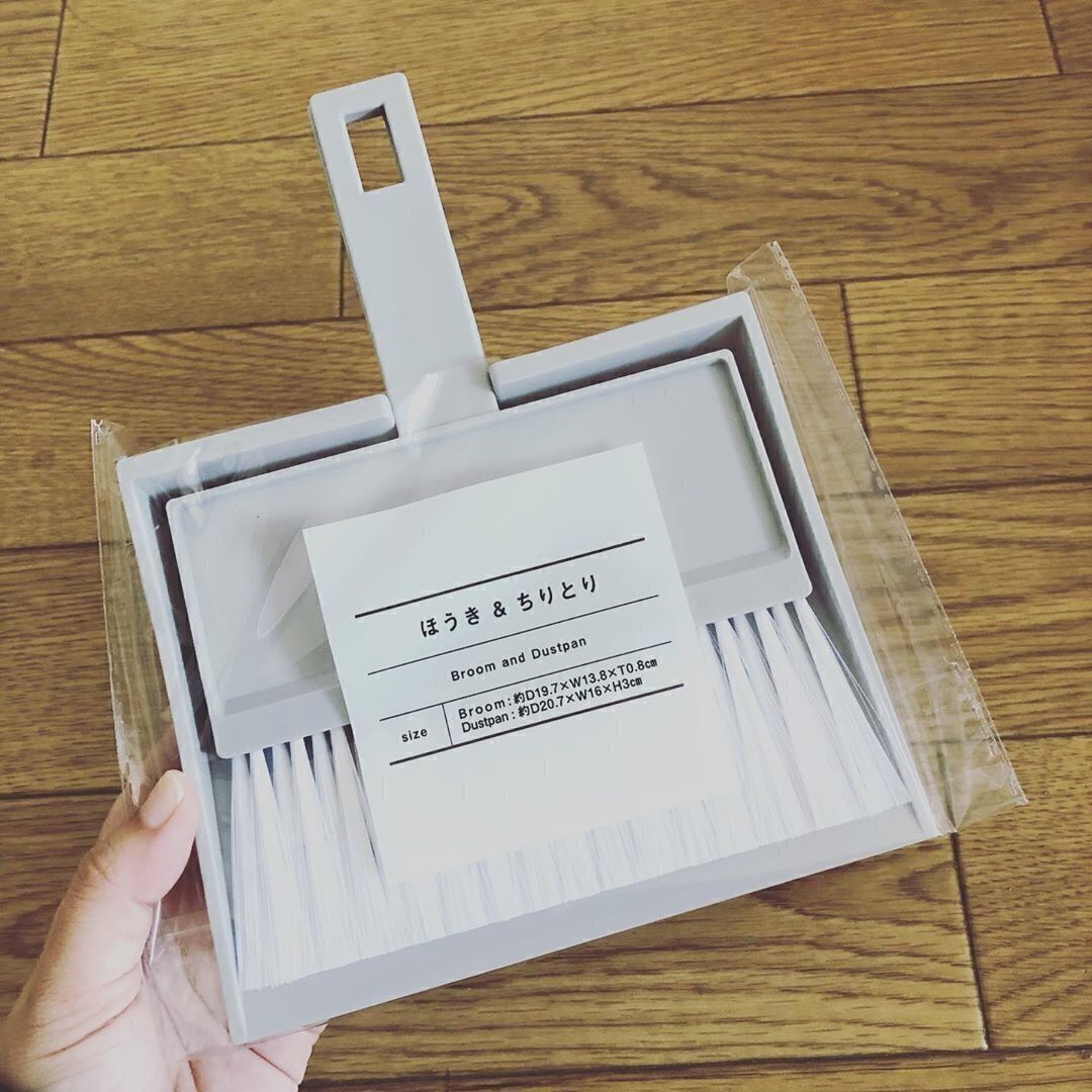 110円で買えるほうきとちりとりのセット。玄関やベランダのほか、こまかい溝などを掃除するのにあると便利そうです。シンプルデザインも人気の理由です。