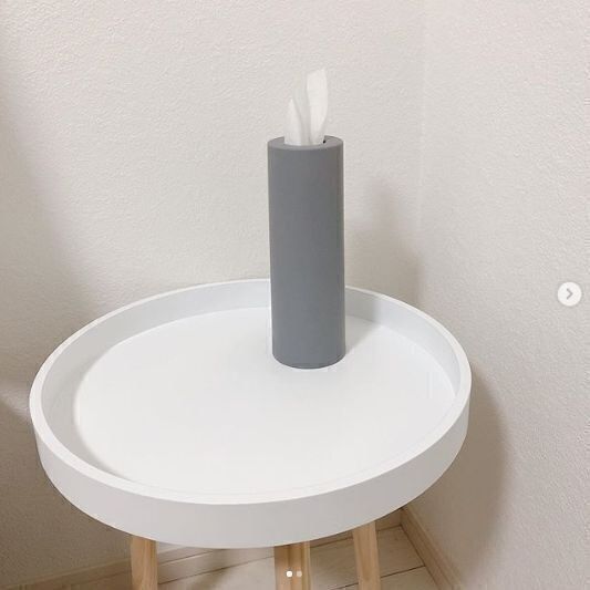 セリアでの大ヒット商品といってもよい、こちらの筒形ティッシュケース。コンパクトな形だから車の中や玄関、寝室などスペースが限られているところなど、場所を選ばず置くことができます。見た目もシンプルでおしゃれ。生活感の出ないデザインが素敵ですね。