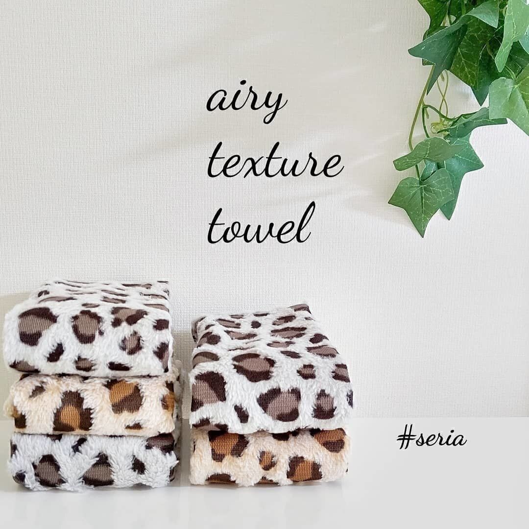 ふわふわでさわり心地が気持ちいいフェイスタオル。レオパード柄がエンボスになっているので、立体的で110円に見えない高級感です。