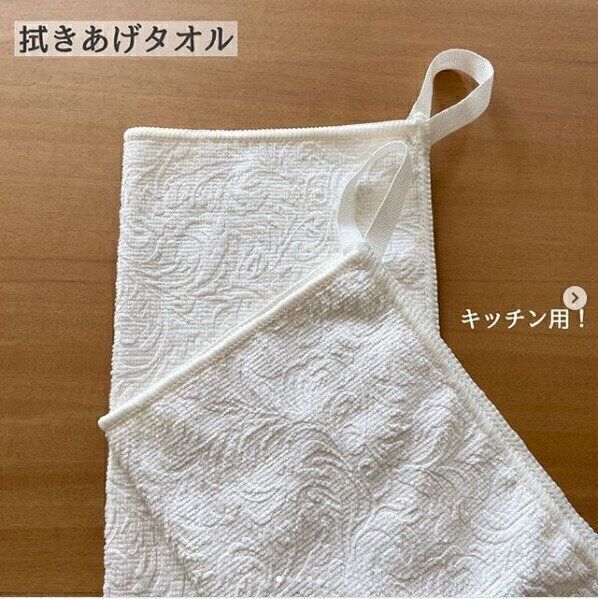 拭き上げに便利なマイクロファイバータオルも、セリアならおしゃれなデザインのものが盛りだくさんです。ループを取りつければキッチンでひっかけて収納できるので、使い勝手もより便利になります。