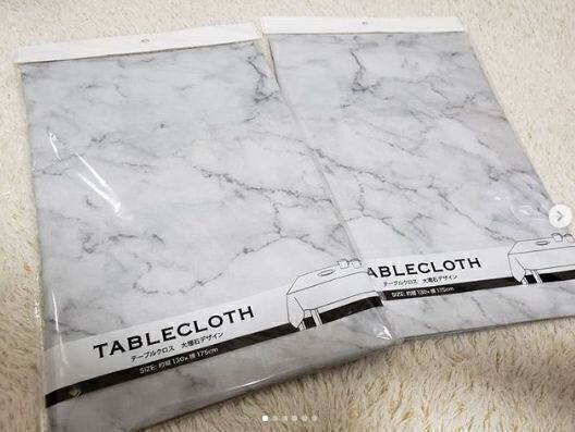 セリアやほかのお店でも人気の大理石柄。こちらはシックでおしゃれなテーブルクロスです。大きさは130×175cm、ダイニングテーブルをしっかりカバーできる大きさです。テーブルクロスをするとお部屋の雰囲気も一気に変わります。シックでおしゃれな雰囲気にしたいときに使ってみてはいかがでしょうか。