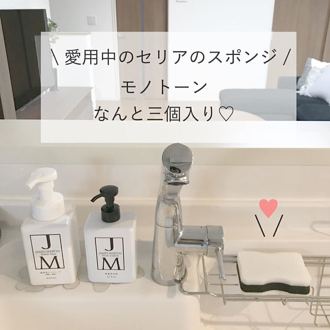 キッチンスポンジといえば、オレンジや黄色などカラフルなものが多いですが、セリアにはモノトーンのシンプルなデザインが登場しています!ごちゃつくキッチンを少しでもスッキリ清潔感を出したいなら、シンプルなカラーのグッズをそろえるのがおすすめ!そんな、モノトーンのキッチングッズがセリアにはたくさんそろっていますよ。