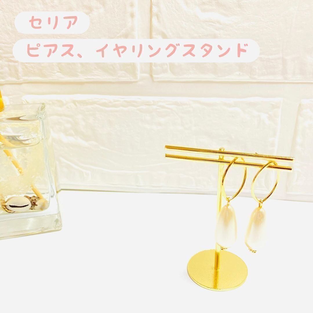 ゴールドで高見えするピアス、イヤリングスタンド。引っかけるとまるで売り物のような見た目になり、気分も上がります。片方だけなくす事態も防げそうですね。