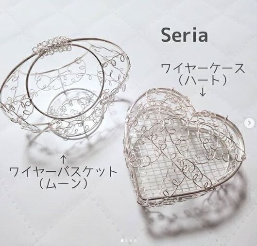 セリアのワイヤーバスケット。ハートとムーンの2種類の形があり、カラーはシルバーとゴールド。100均アイテムですが高見えするアイテムです。小物入れに使ったり、雑貨として飾っても素敵ですね。