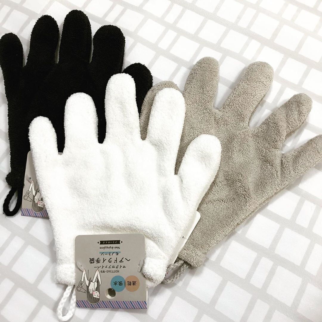 ドライヤーをかけるときに反対側の手にはめて使うと、素早く髪の毛が乾くヘアドライ手袋。乾かすのに時間がかかるロングヘアのかたに、とくにおすすめです!