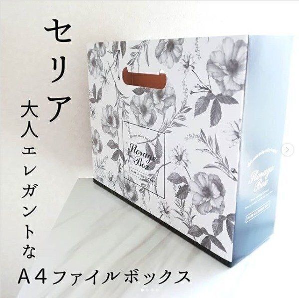 セリアには、おしゃれな組み立て式のファイルボックスも多数取りそろえられています。こちらのファイルボックスは、大人エレガントなボタニカル柄なファイルボックスです。モノトーンカラーなのでお部屋にも合わせやすくておすすめです。