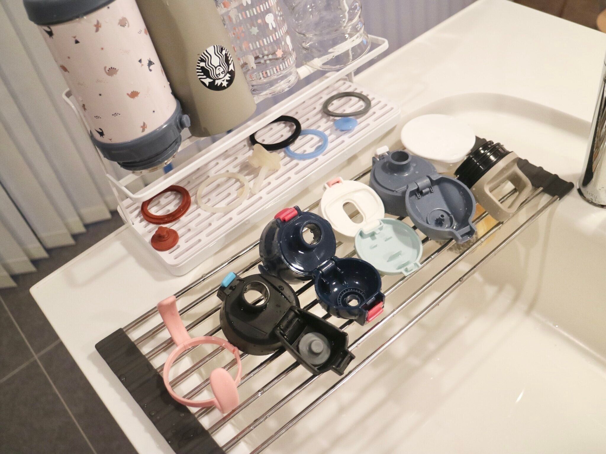 水筒を洗うとき、蓋やパッキンなど細かいパーツが多くて乾かす場所に困ることありませんか?