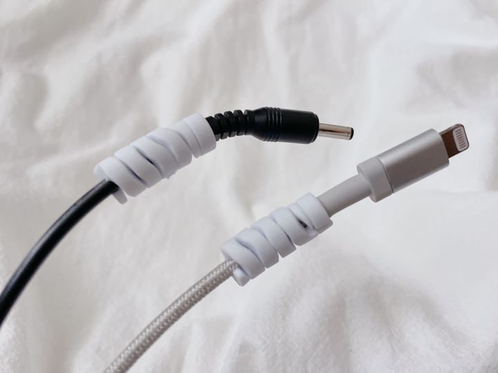 取り付け方はカンタンです。ケーブルガードの先端をケーブルの根元に取り付け、スパイラル状のコードを巻き付けるようにして取り付けます。取り外す際は逆の手順で行えば取り外せるので、付け替えも可能です。