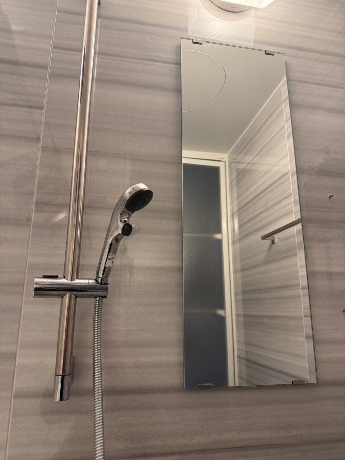 具体的にはお風呂上がりに水切りワイパーで鏡の水をとることを我が家のルールにしました。