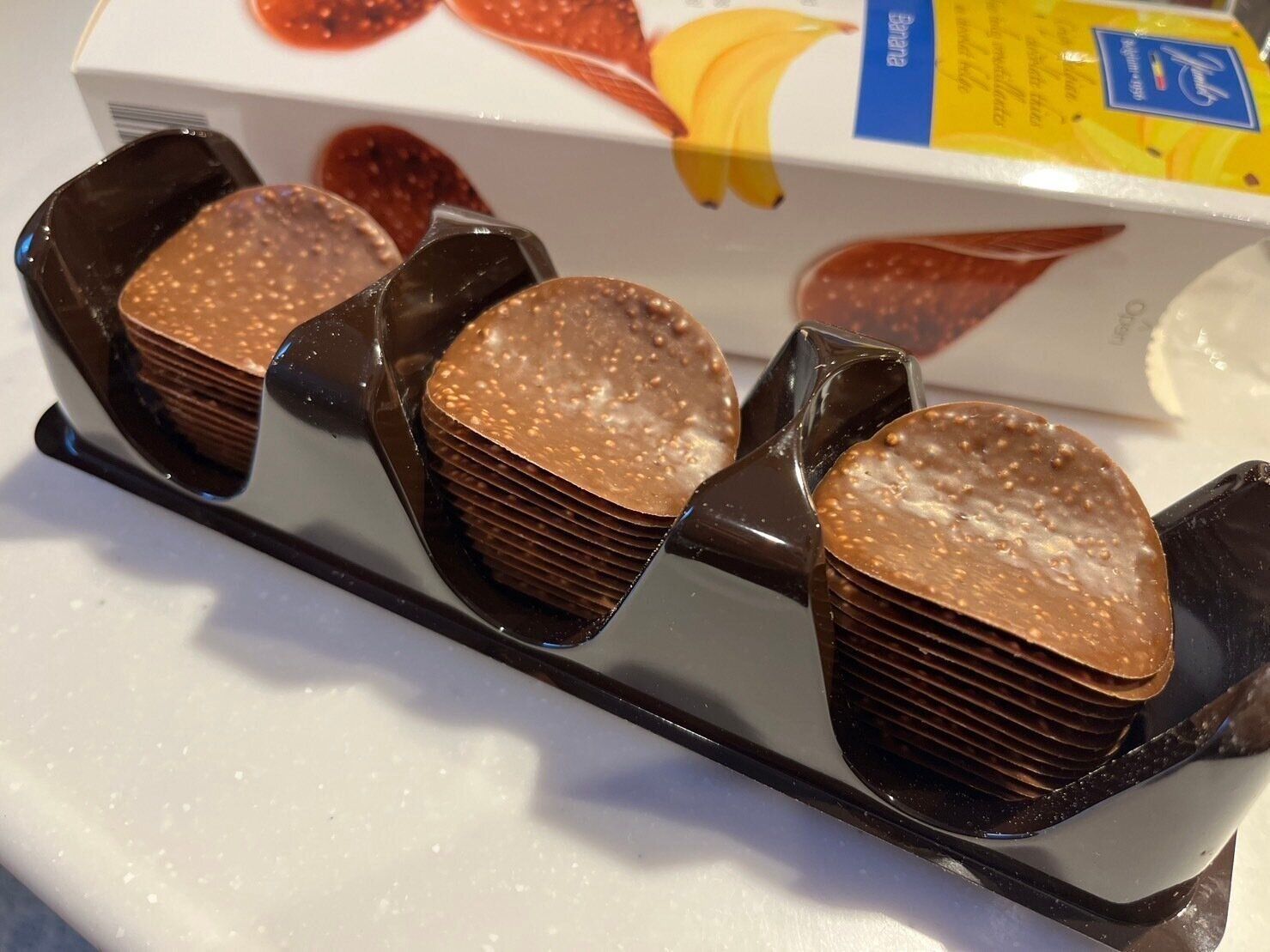 パフ入りでサクサクした食感で、チップス状で見た目は薄いですが食べてみると意外と食べごたえがあります。