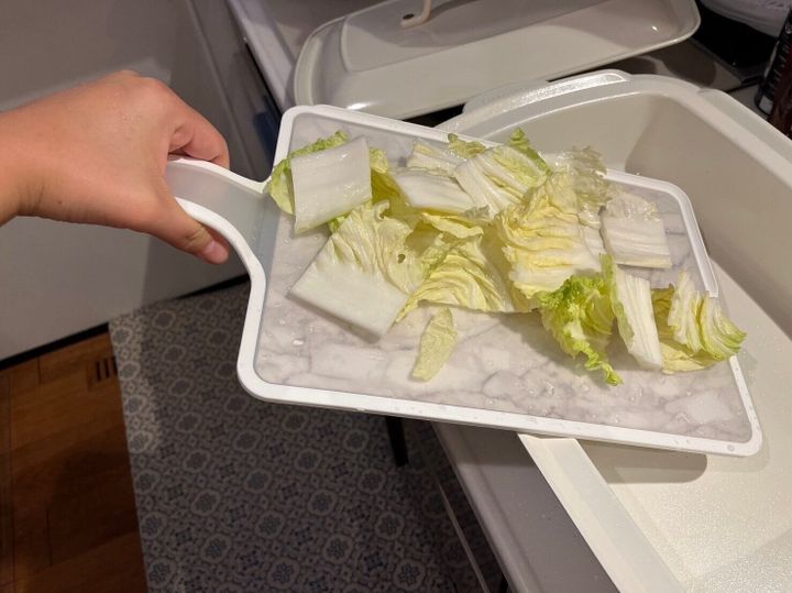 取っ手が付いていることにより、切ったものをそのままフライパンなどに運ぶ際にとても便利です。