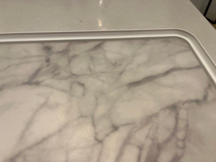 大理石調のおしゃれなまな板ですが、なんと取っ手が付いているんです。