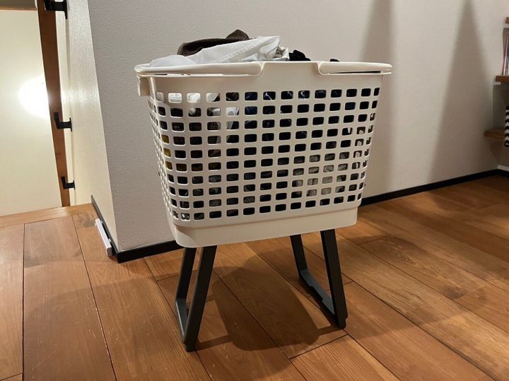 一見普通の洗濯かごのようですが、こちらのすごいところはかごの裏にスタンドが付いていて、広げると高さが約25.5cmアップします。