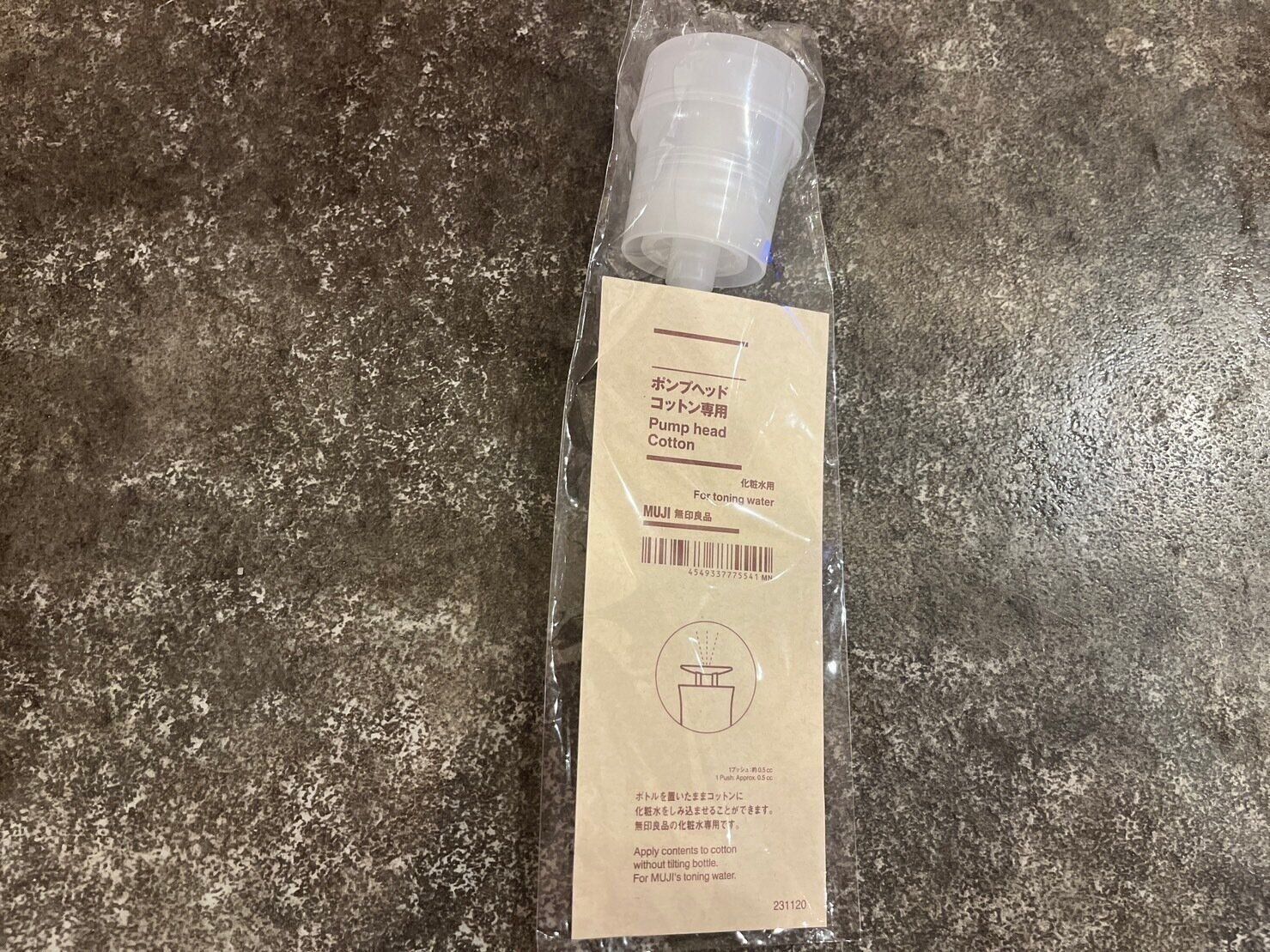 無印良品の化粧水のボトルにつけて使えるポンプヘッドです。
