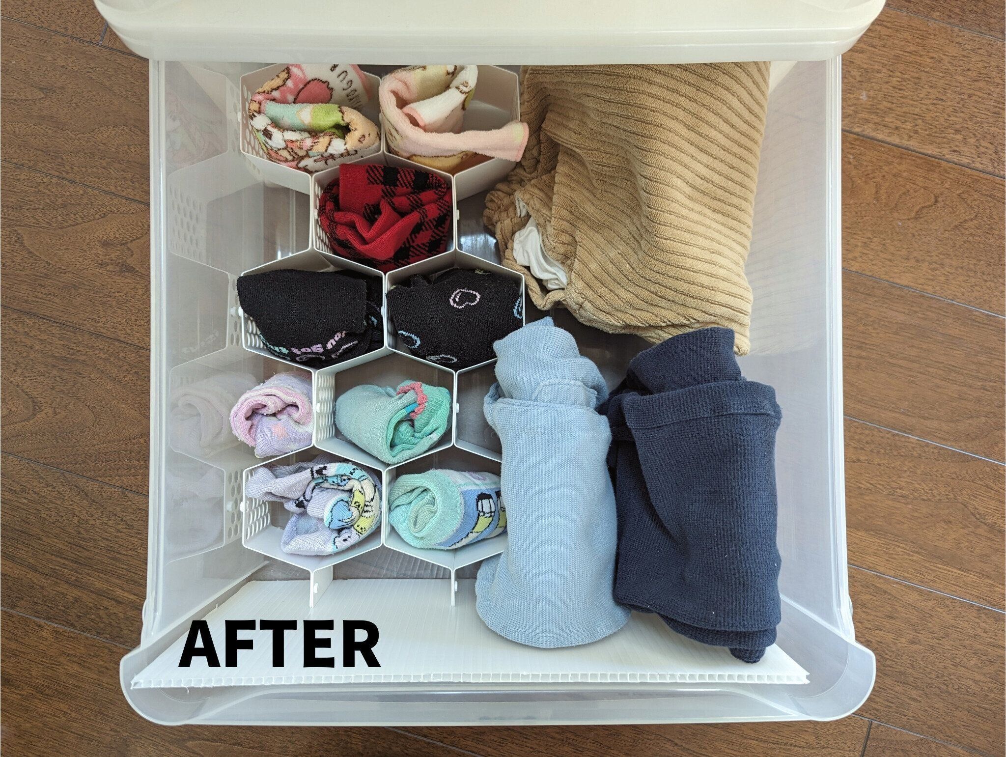 靴下&タオル収納→蜂の巣形パーテーション