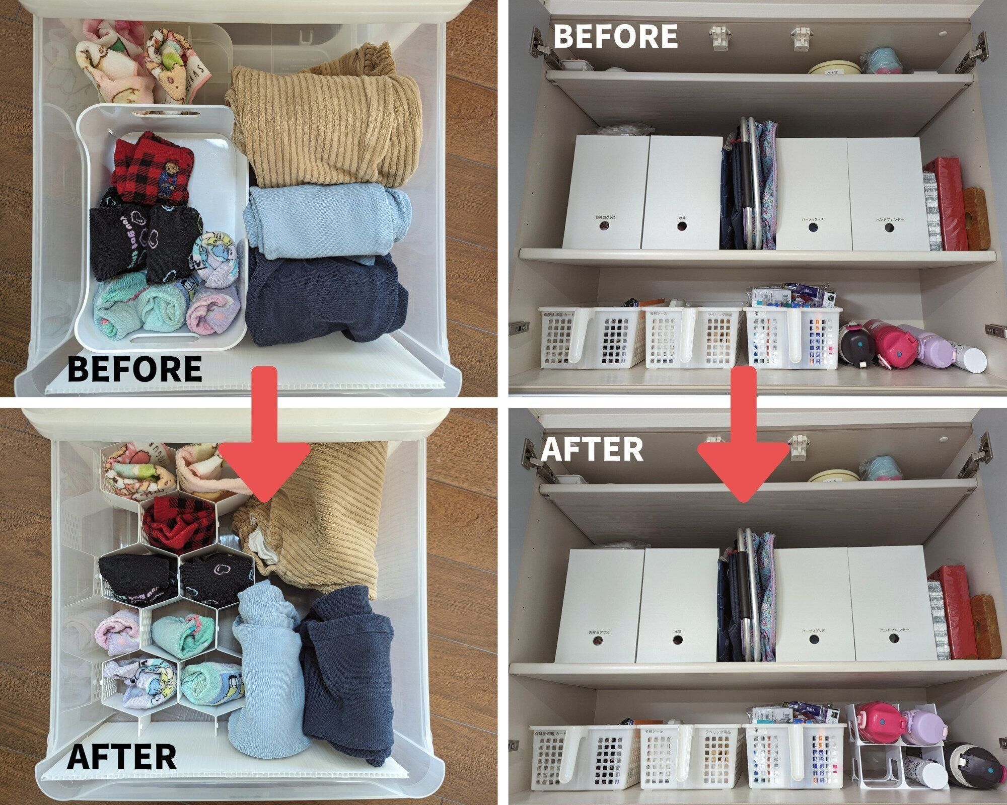 今回は、ダイソーの商品を使って見直した、子どもたちの引き出しと水筒収納をご紹介します。